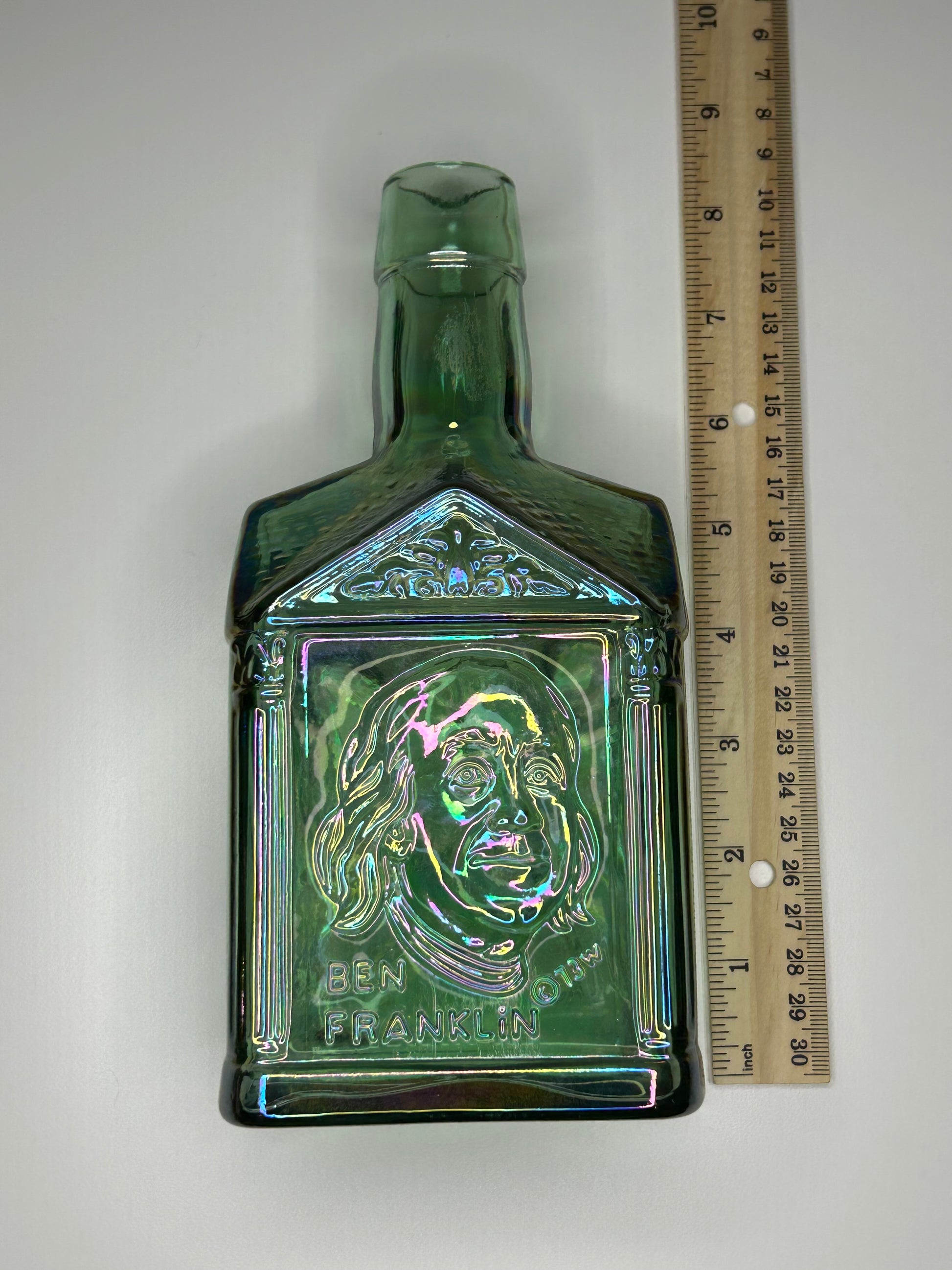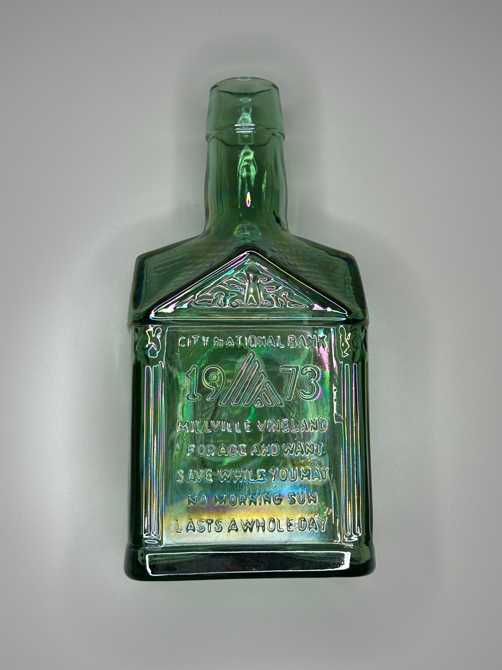 1973 City National Bank Millville Vineland Great American Series Benjamin Ben Franklin Iridescent Commemorative Decanter. New in box NIB.