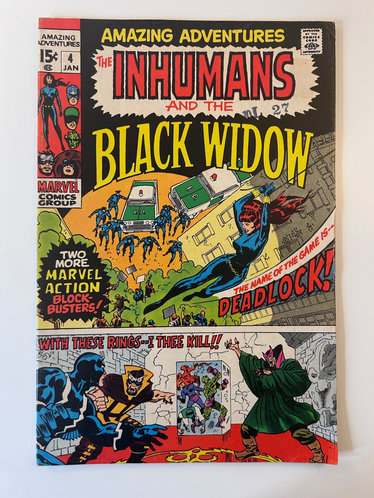 Amazing Adventures The Inhumans and The Black Widow #4 Vintage July 1971 Marvel Comics Group Comic Book. Shipped in box bagged with cardboard protectors. See photos for condition. 100% of sale benefits charity.
