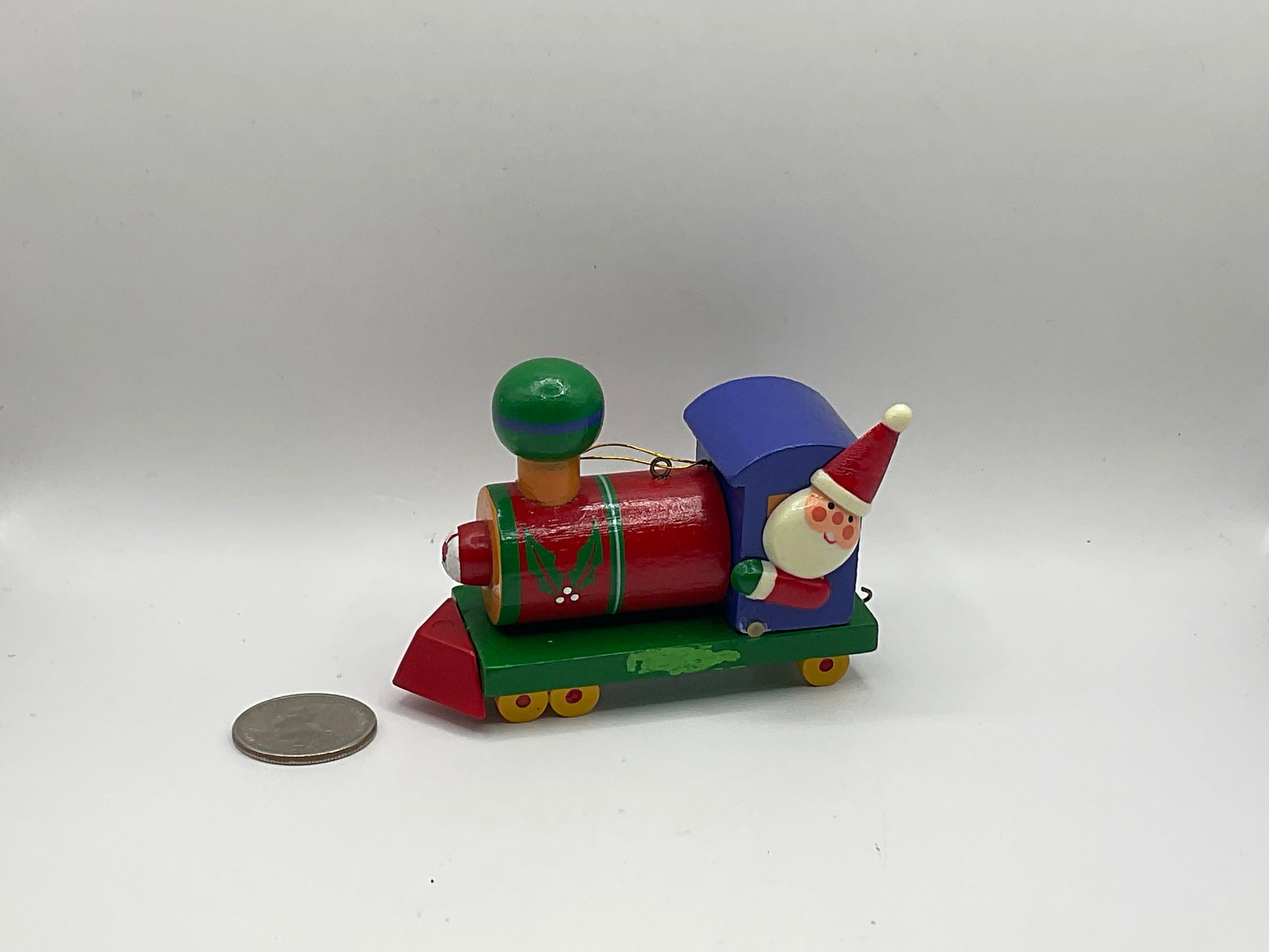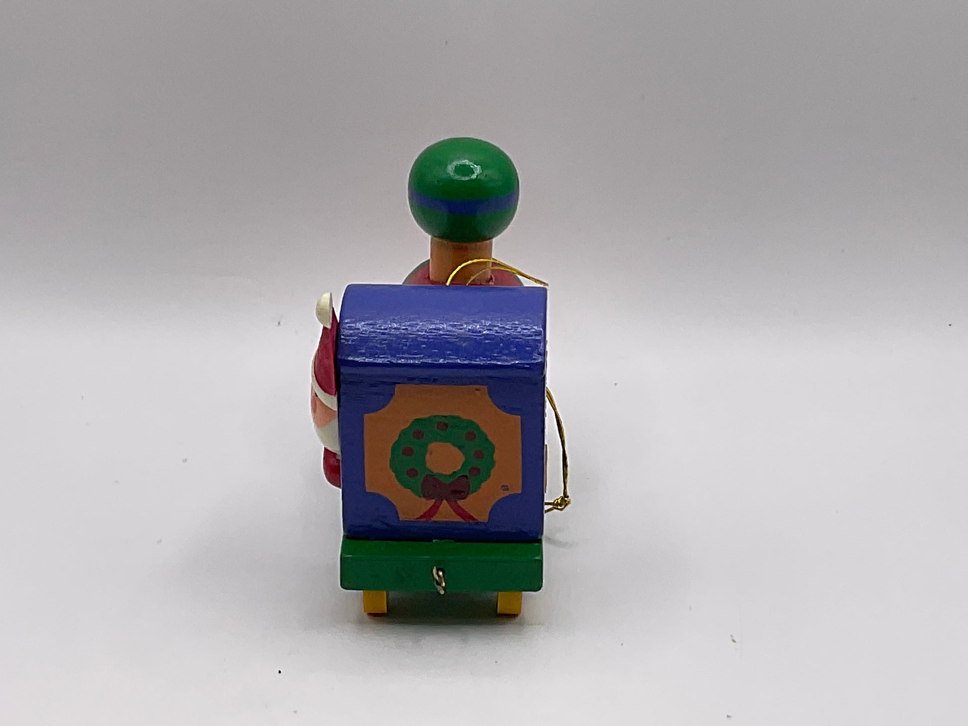 Avon Gift Collection Vintage Wooden Santa Claus Train Engine Christmas Holiday Seasonal Ornament in Original Box. Slight white paint chipping/rubbing off on front. 100% of sale benefits charity.