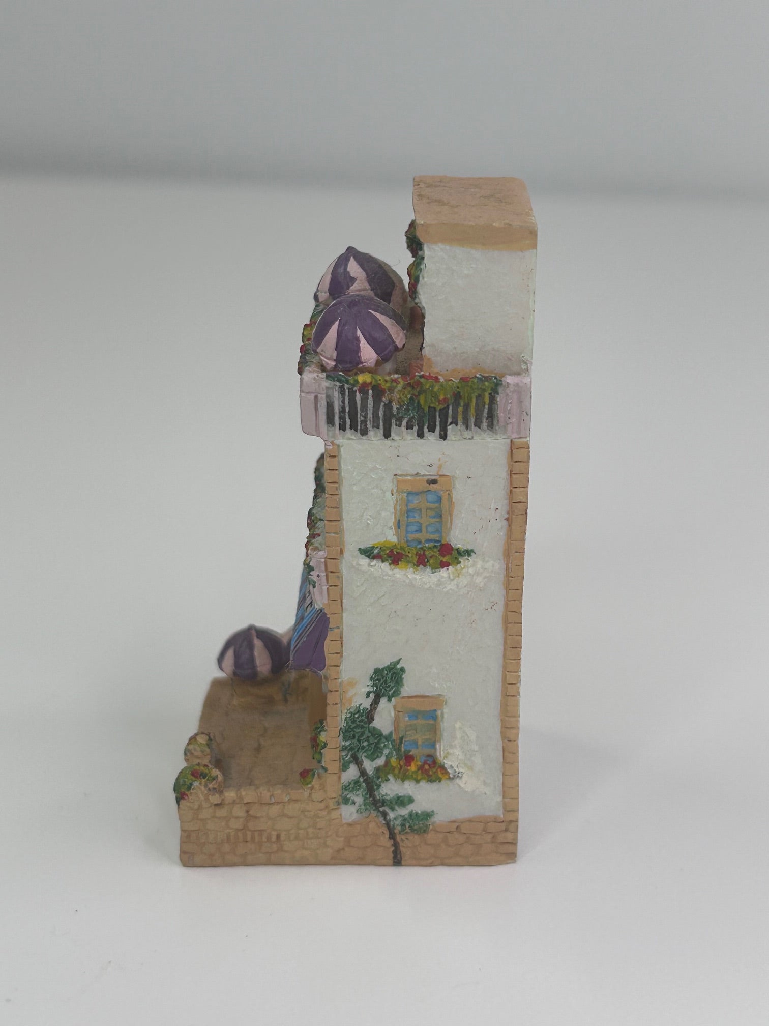 Baileys Irish Cream Vintage 1998 Limited Edition Continental Cafes Mini Coffee Shop Building Figurine 2.5 Inches Tall Resin Cottage Style Blue and Purple Accent Awning Balcony and Patio Mini Cafe Coffee Shop. Excellent condition. Not in original box or package. 100% of sale benefits charity.