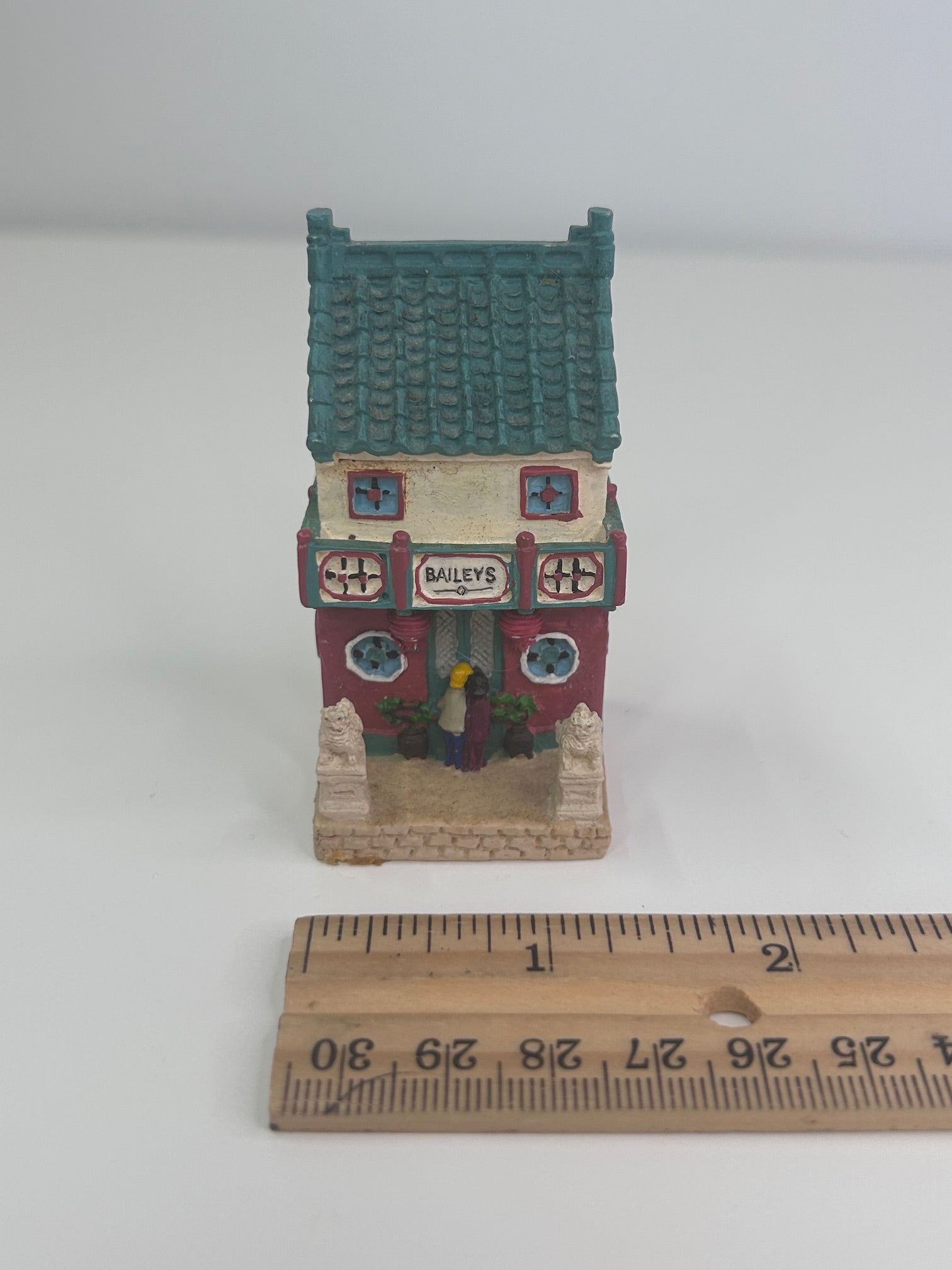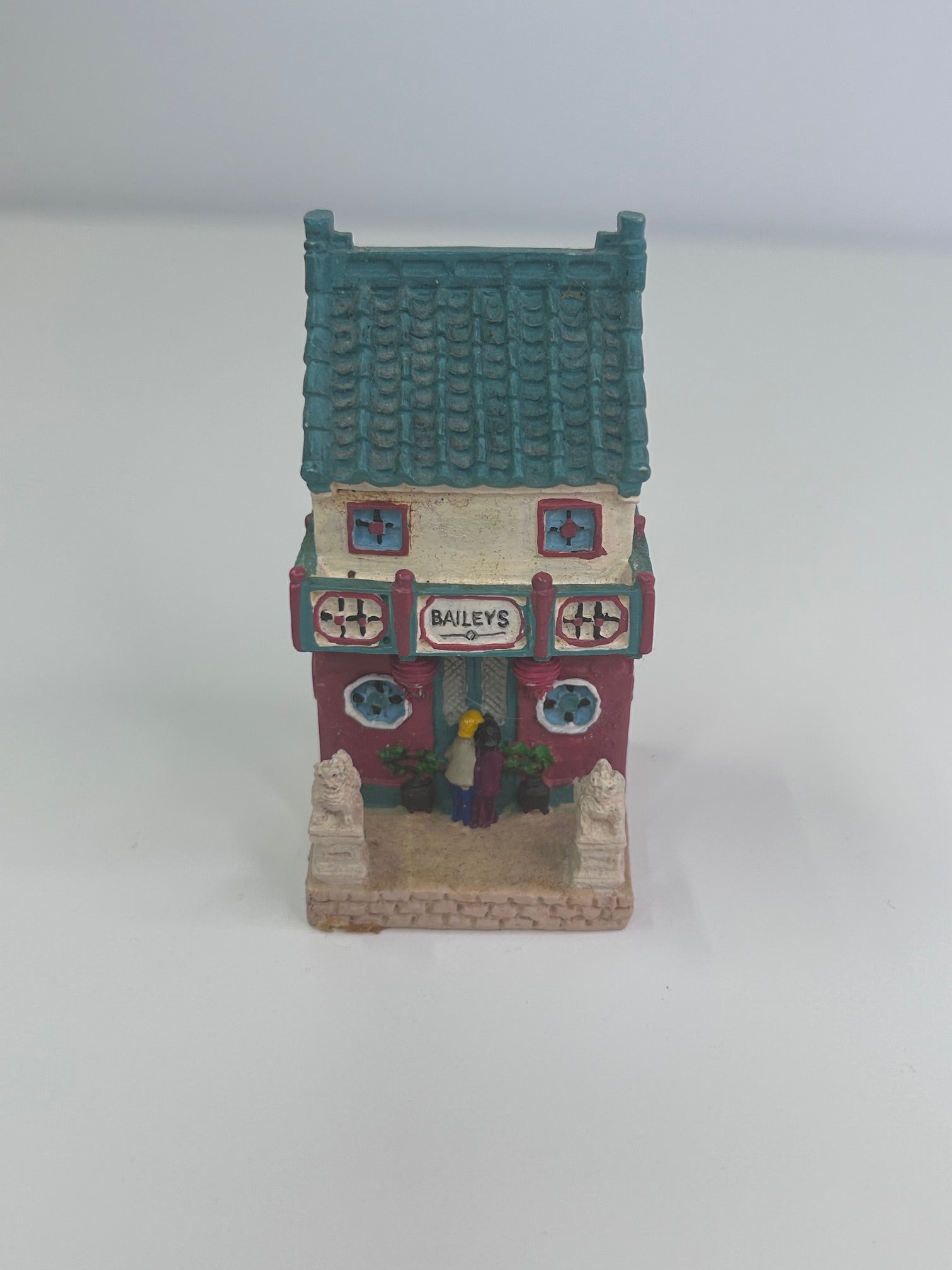 Baileys Vintage 2000 Limited Edition Shanghai China Chinese Tea Cafe Figurine. Approx 2.5 x 1.5 x 1.5 inches. 100% of sale benefits charity. As part of a special collection, this intricately designed piece captures the essence of a traditional china tea cafe, making it a unique addition to any decor. With its high-quality craftsmanship and attention to detail, this figurine is a must-have for collectors of fine sculptures and figurines. Add a touch of Shanghai charm to your home with this exclusive piece from 2000.
