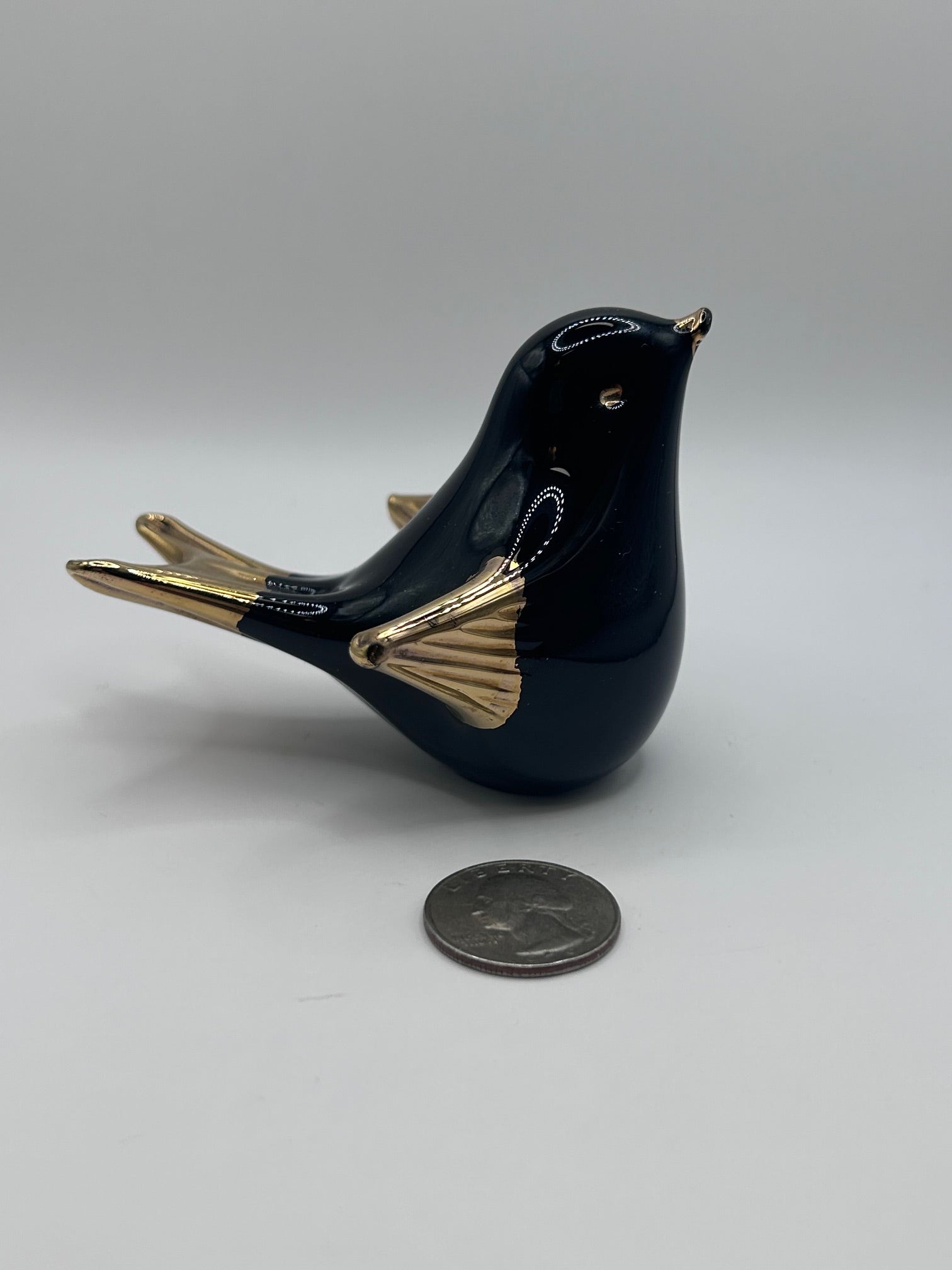 Black and Gold Handmade Artisan Glass Bird Figurine. Not in Original Box. 100% of sale benefits charity.