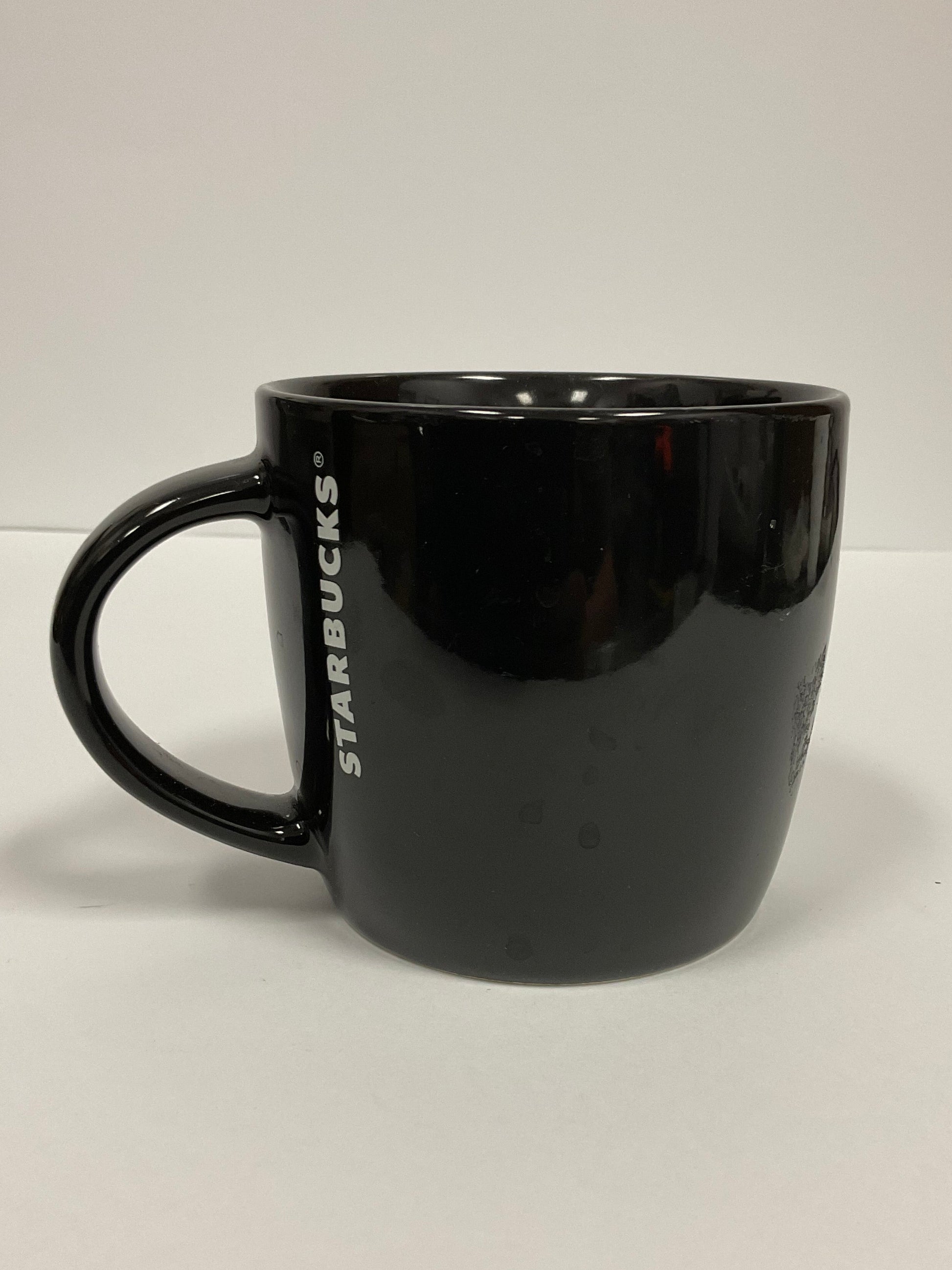 Starbucks Coffee Cup Black Ceramic Wide Mug with Oversized Green Starbucks Logo 14 Fl Oz Excellent Condition Not in Original Box or Package. 100% of sale benefits charity.