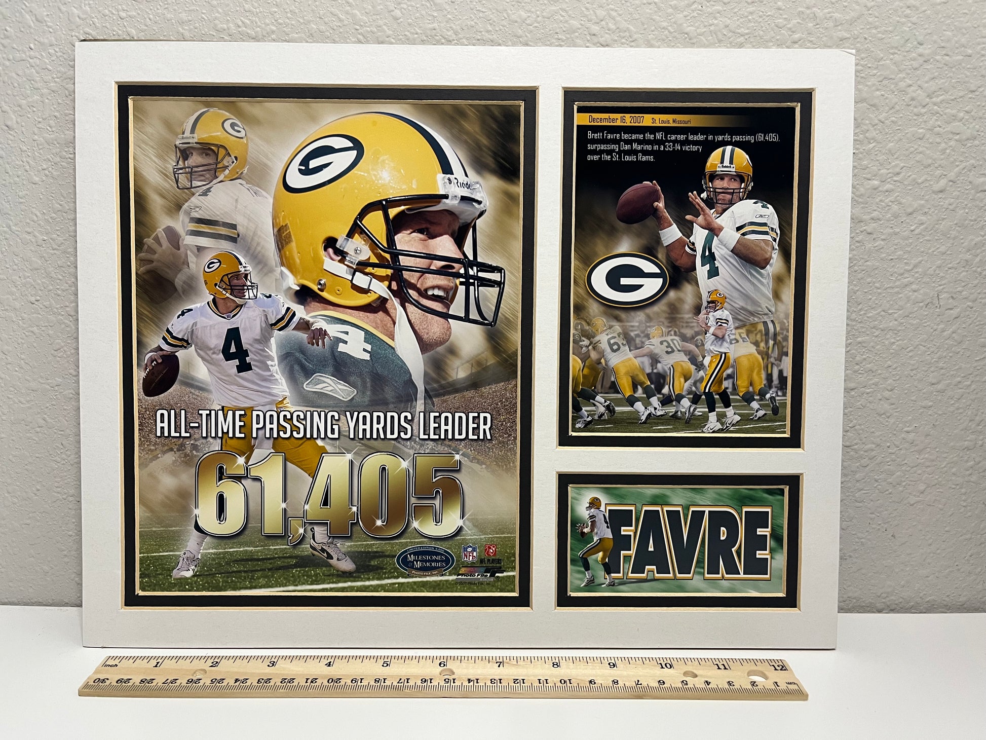 BRETT FAVRE ALL-TIME PASSING YARDS LEADER 61,405 DOUBLE MATTED COMMEMORATIVE DISPLAY