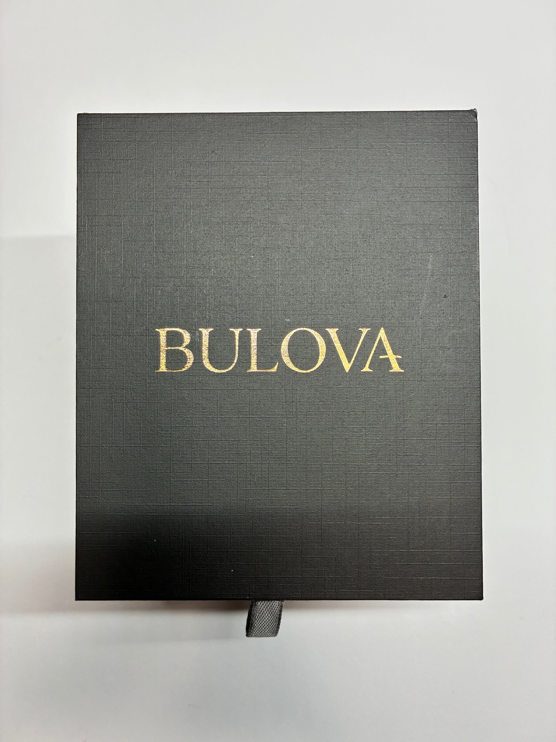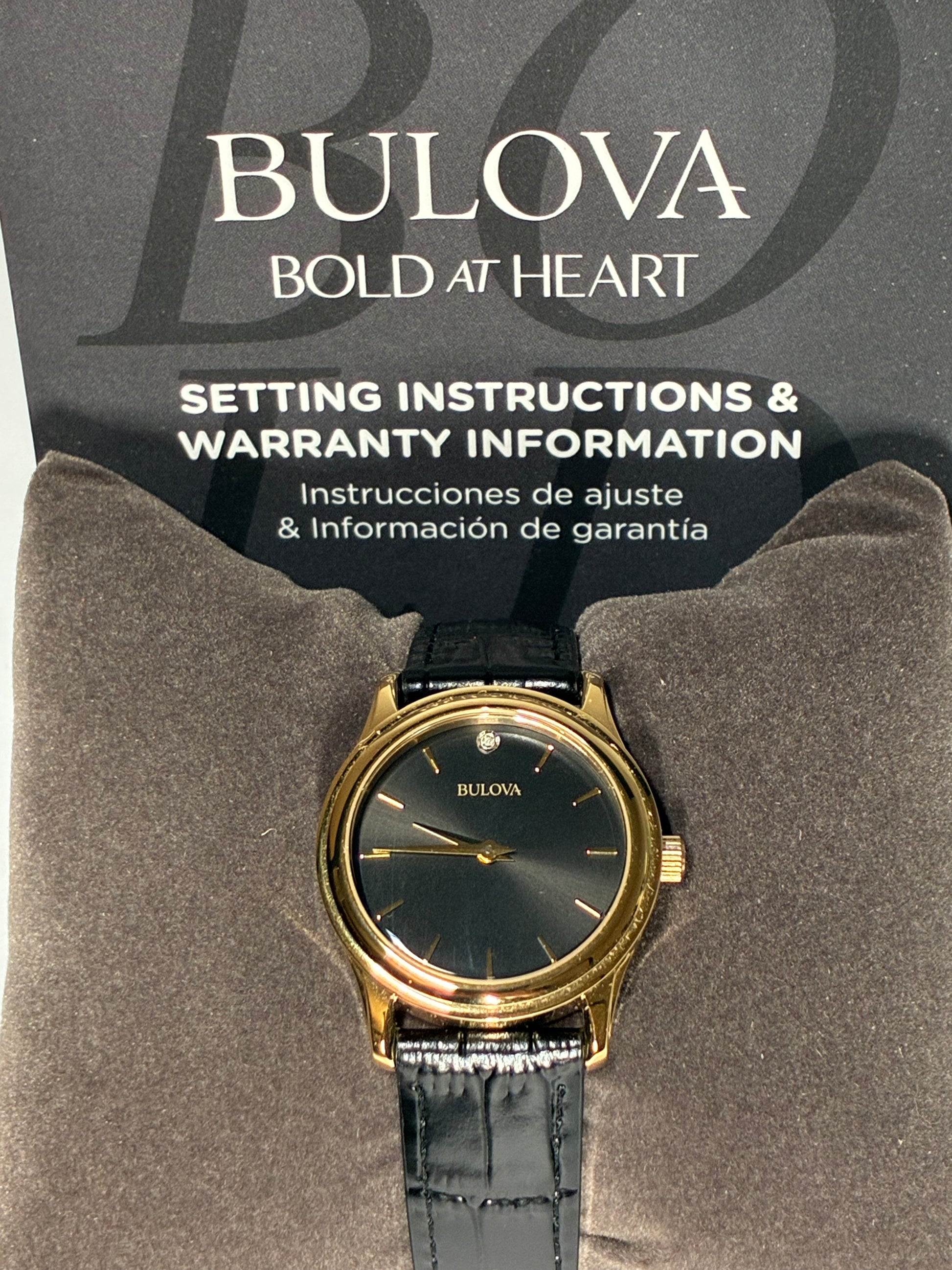 Bulova Diamond Accent Corporate Collection Women's Watch New in Original Box Gold-Tone Sunray Dial Black Leather Straps