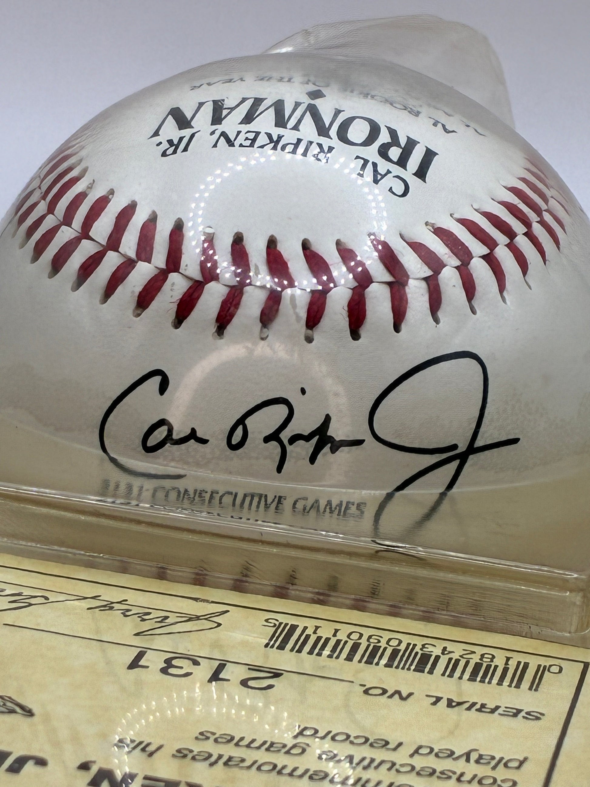 Cal Ripken Jr Ironman 2132 Consecutive Games Commemorative Baseball with Certificate of Authenticity COA Facsimile Autograph in Original Packaging Serial #2131. 100% of sale benefits charity.
