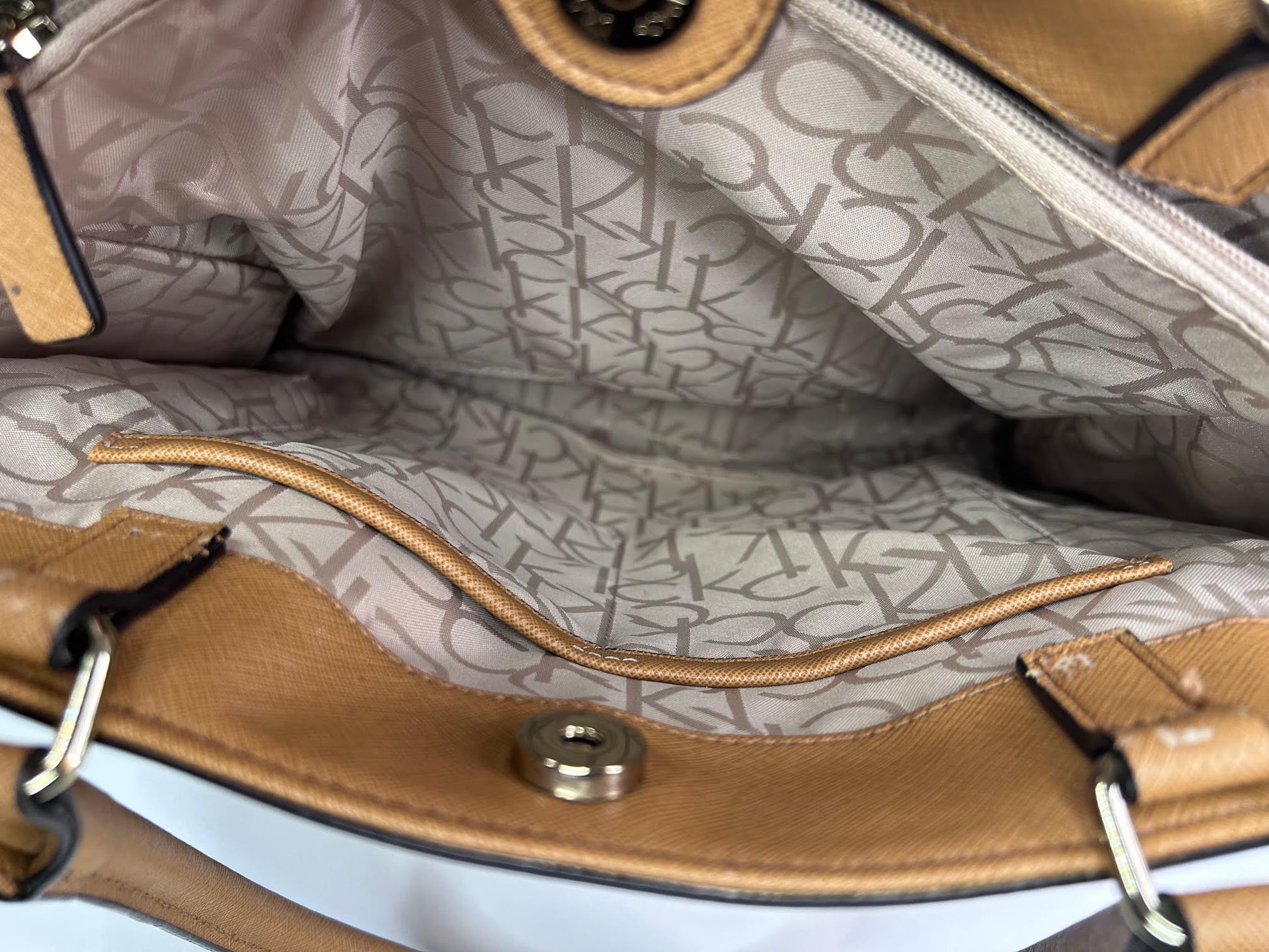 Calvin Klein CK Monogram Brown Tote Bag with Shoulder Strap Excellent Condition