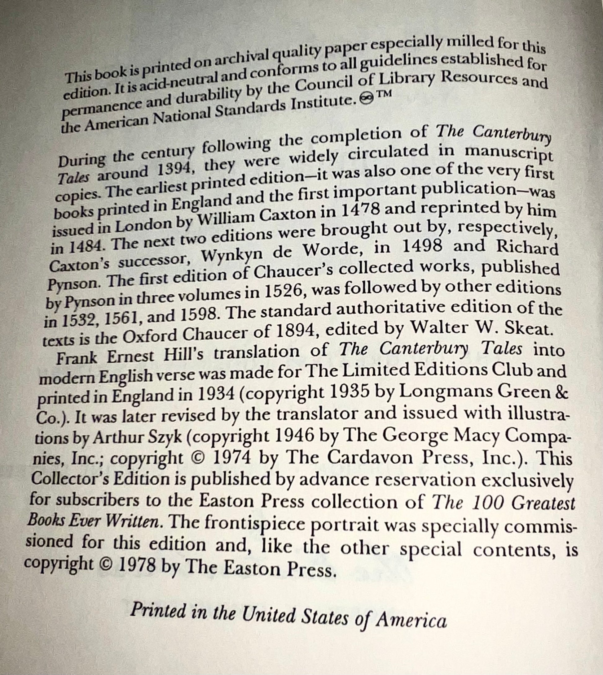 The Canterbury Tales by Geoffrey Chaucer Vintage 1978 The Easton Press 100 Greatest Books Ever Written Leather-Bound Collector's Edition