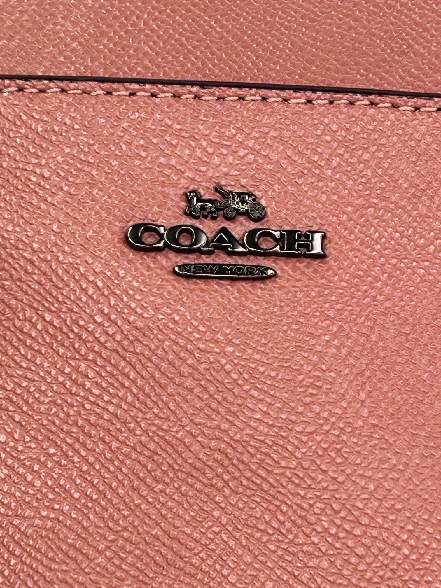 COACH Kitt Messenger Crossgrain Leather Dusty Rose Crossbody Bag. Dusty Rose, Pink, Salmon. Inside open pocket. Zip-top closure. Fabric lining. Outside open pocket. Detachable strap with 23" drop for shoulder or crossbody wear. Compatible with Coach interchangeable straps. 7 3/4" (L) x 8 1/4" (H) x 1" (W)