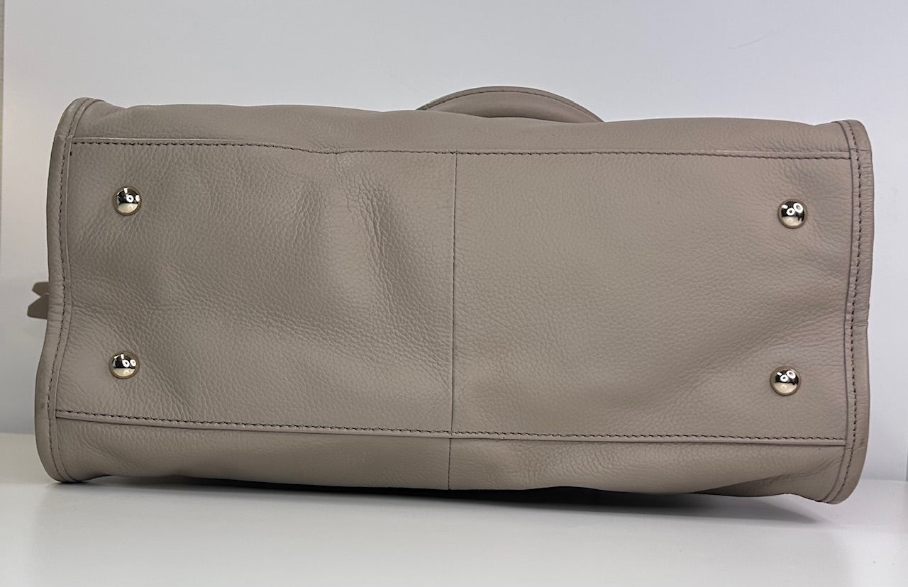 Cole Haan Taupe Light Grey Leather Tote Bag Handbag Good Condition