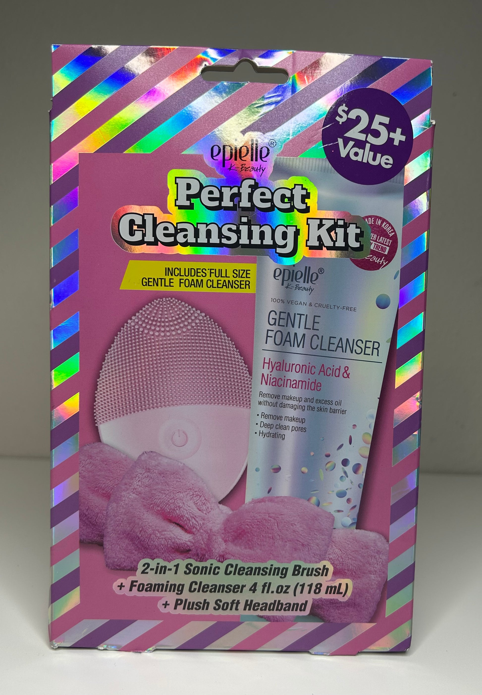 Epielle K-Beauty Perfect Face Cleansing Kit Gentle Foam Cleanser 2-in-1 Sonic Cleansing Brush Foaming Cleanser Plush Soft Headband