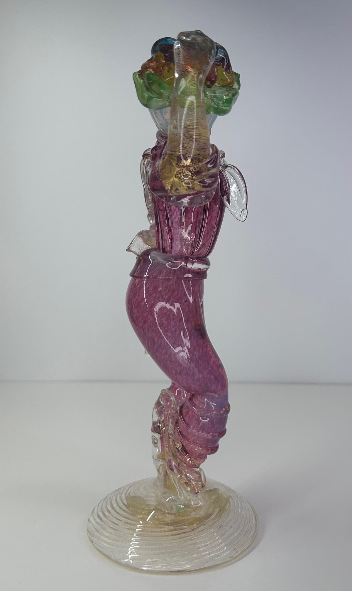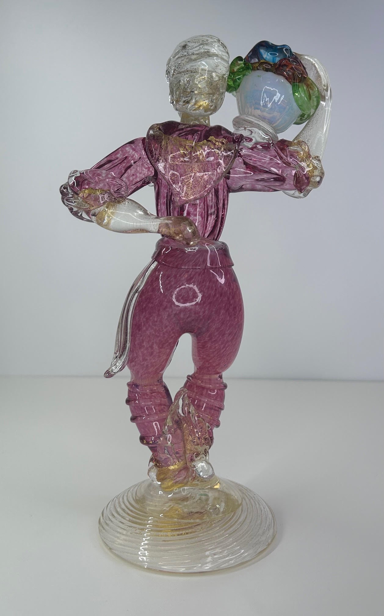 Ercole Barovier & Toso Murano Glass Venetian Man With Fruit Basquet Basket Vintage 1930-1960 11 3/8 inches tall 4 1/2 inch base diameter. Not in original box or package. 100% of sale benefits charity.