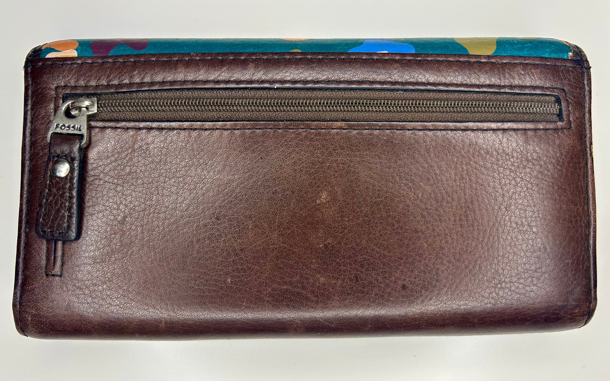 FOSSIL Marlow Turquoise Floral Trifold Wallet Gently Used Like New