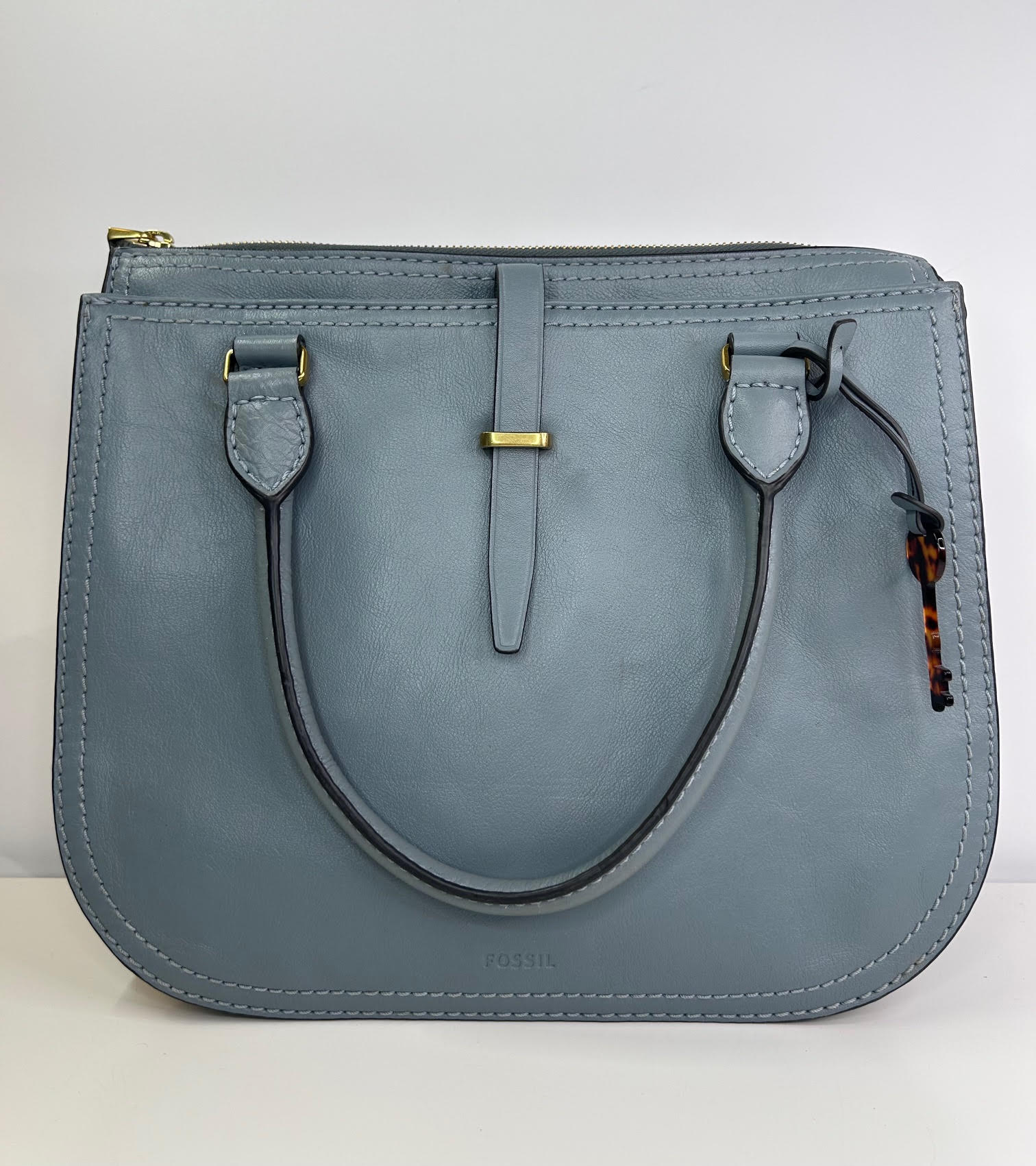 Fossil Ryder Horizon Blue Leather Satchel Handbag with Shoulder Strap