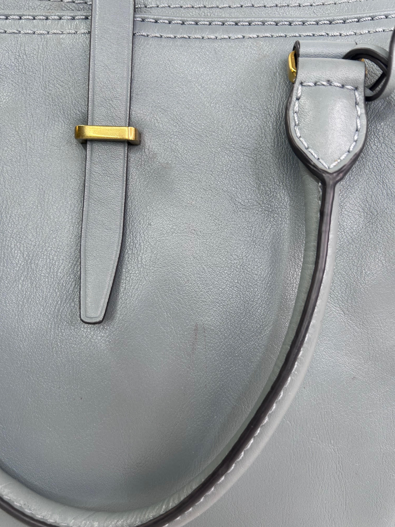 Fossil Ryder Horizon Blue Leather Satchel Handbag with Shoulder Strap. Like new condition. Small spot on front in photo 12 inches Length x 6 inches Width x 10 inches Height. 100% of sale benefits charity.
