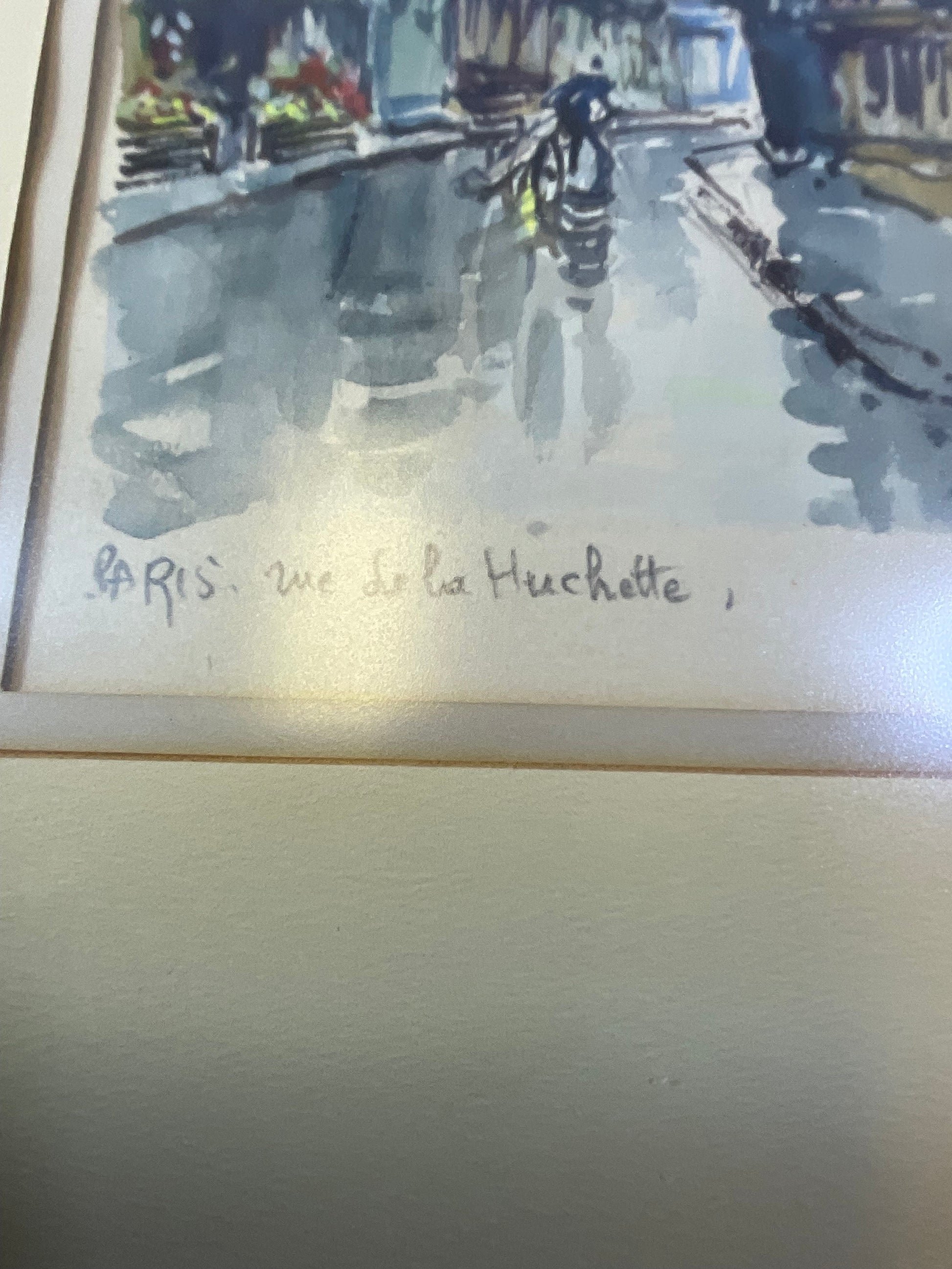 Franz Herbelot Water Color Paris Themed City Street Framed #1. 19in tall and 15in wide. Frame has scuff marks and light scratches, some corners taped to prevent further damage. 100% of sale benefits charity.