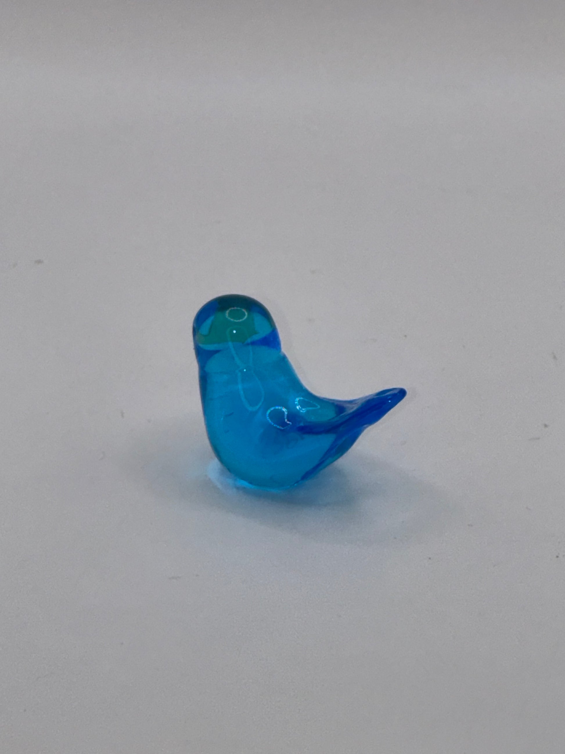 Handmade Miniature Artisan Bright Blue Mini 1 Inch Glass Bird Figurine Collectible Art Decor. Not in original box/package. 100% of sale benefits charity.