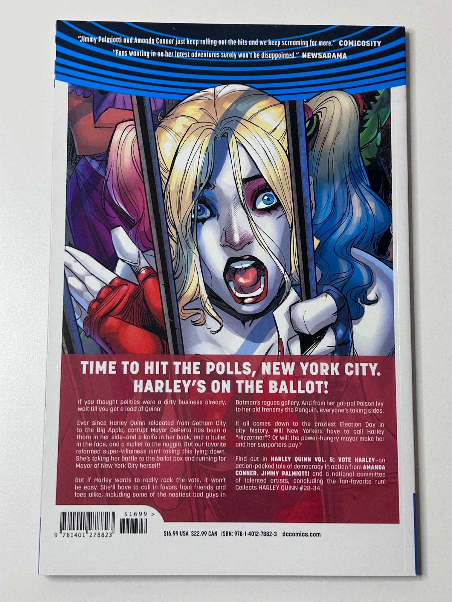 Harley Quinn Vol 5: Vote Harley DC Comics Rebirth Paperback May 8, 2018 DC Universe Rebirth by Amanda Conner, Jimmy Palmiotti, John Timms, Alex Sinclair. 100% of sale benefits charity.