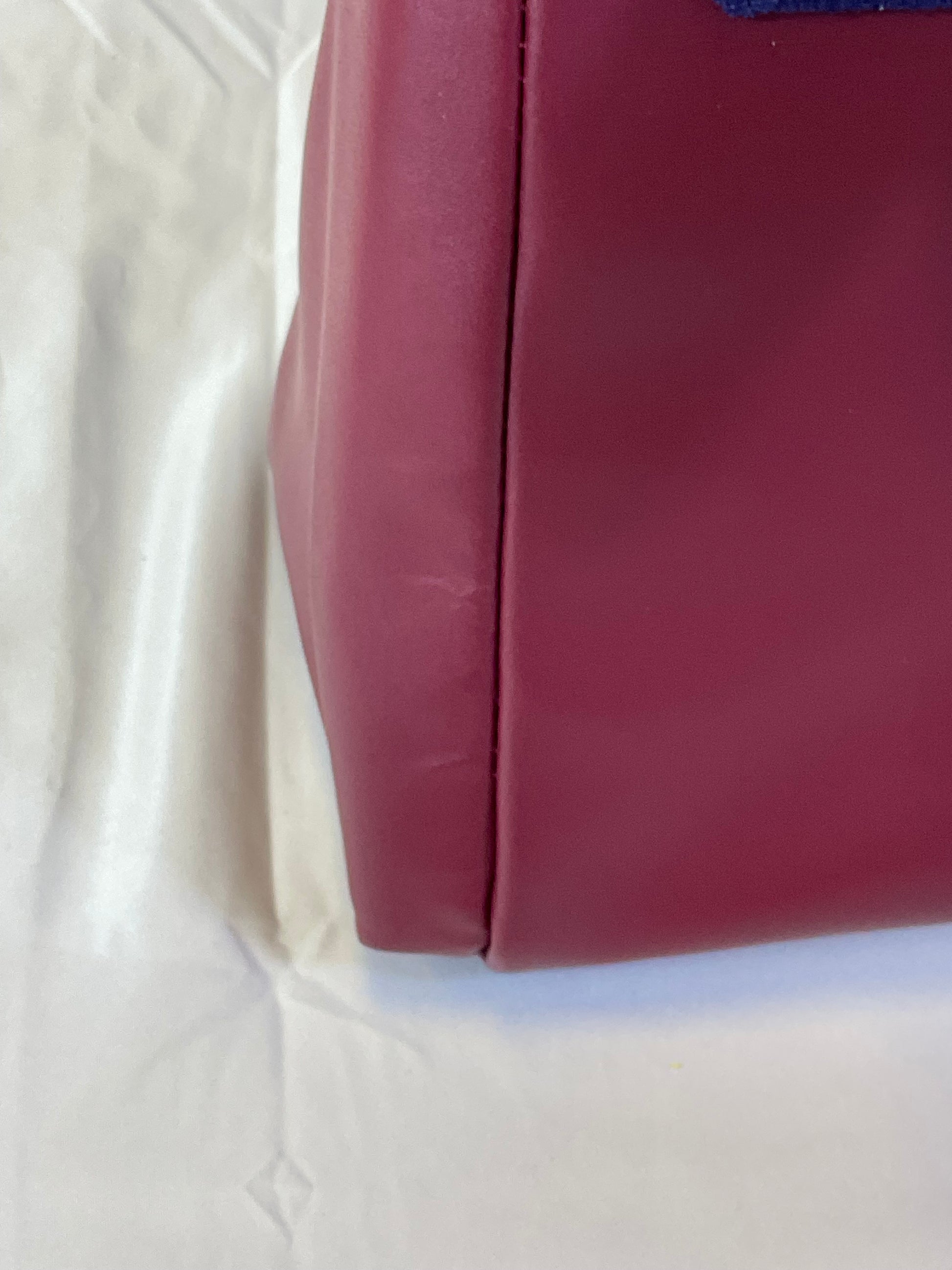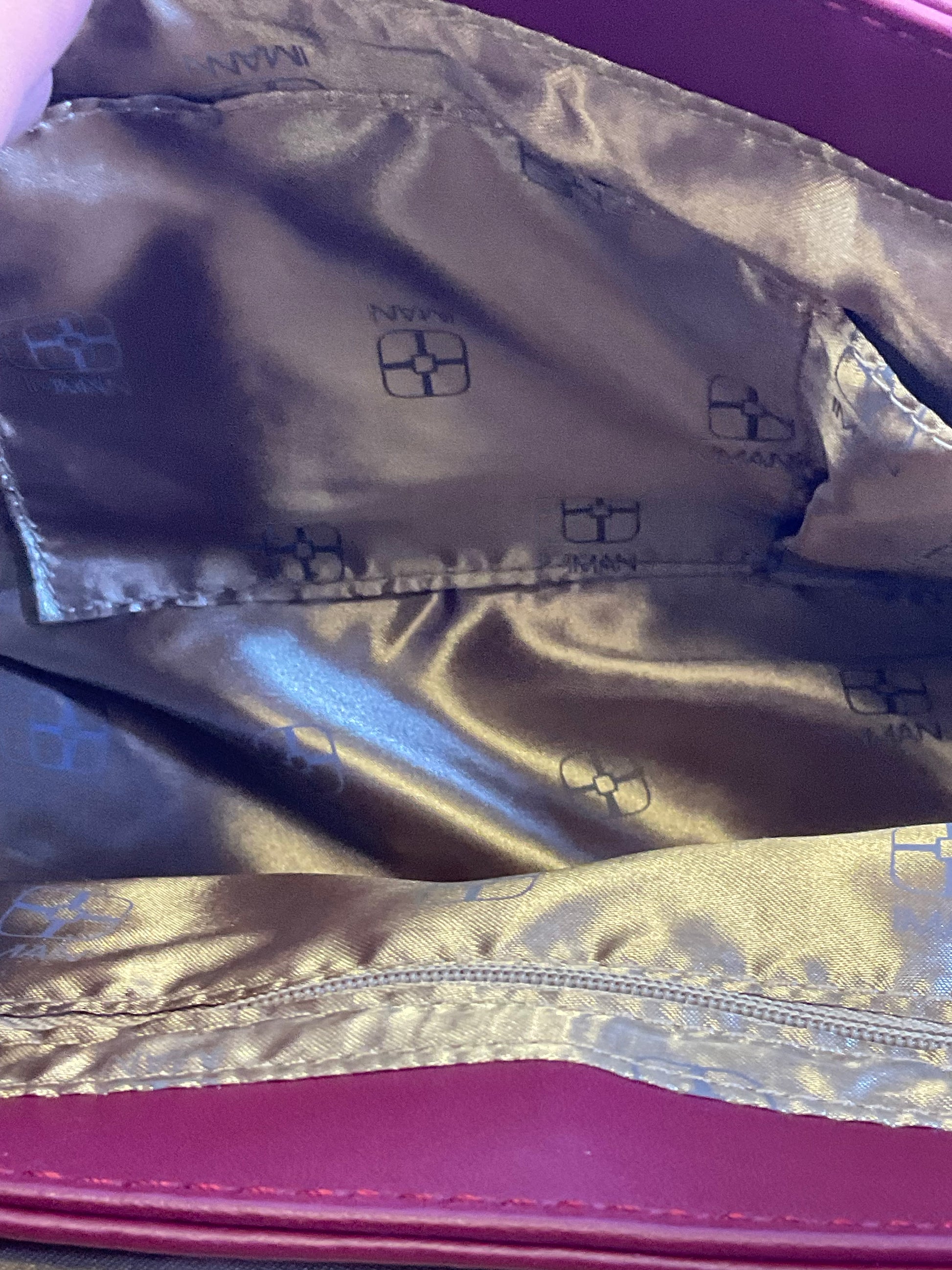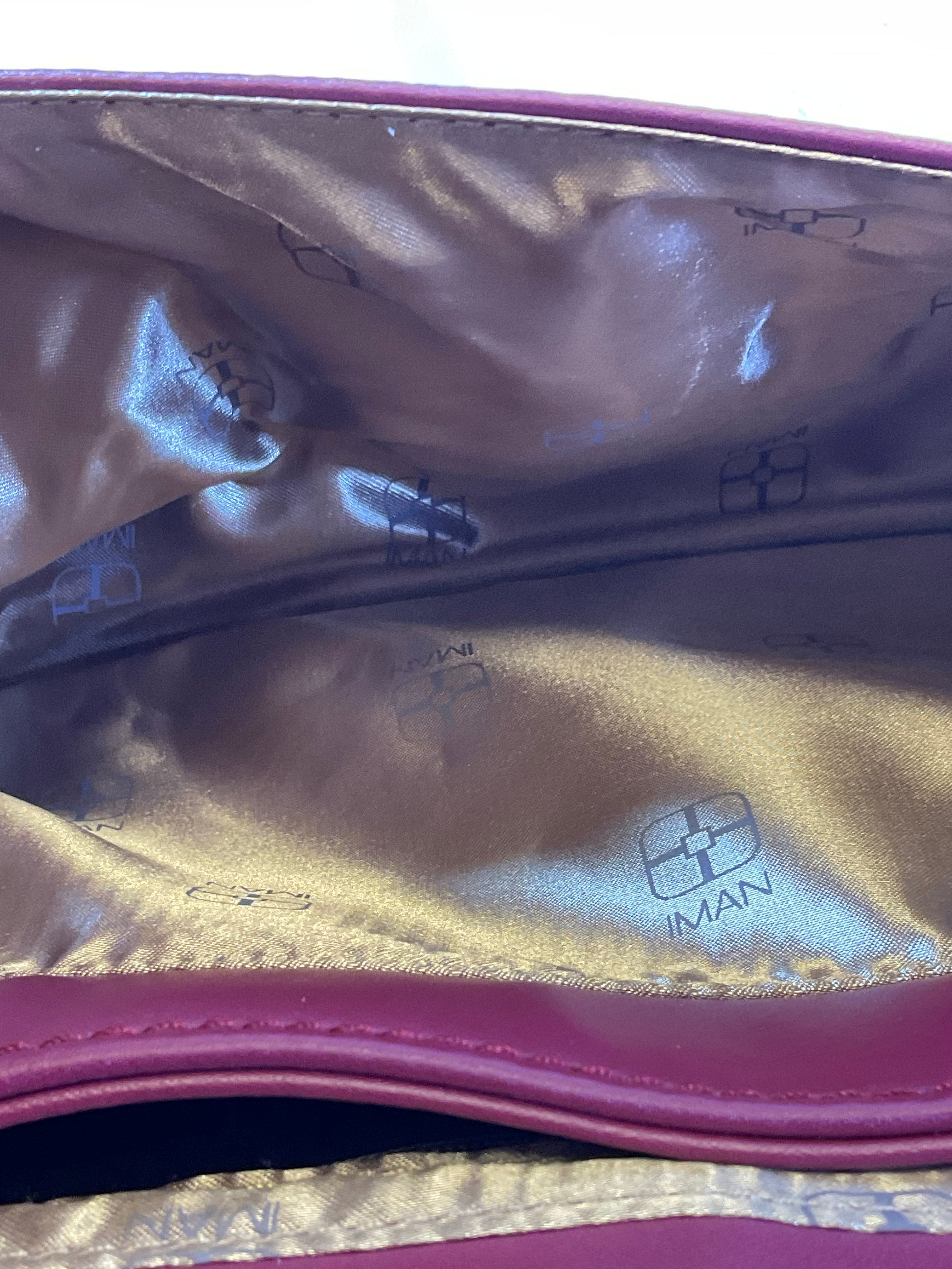 IMAN Global Chic Luxurious Suede and Leather Blue and Red Handbag with Goldtone Hardware New with Tags. 100% of sale benefits charity. Gently pre-owned. Minor scuffs. Minor scratches on hardware. See photos attached for item condition.
