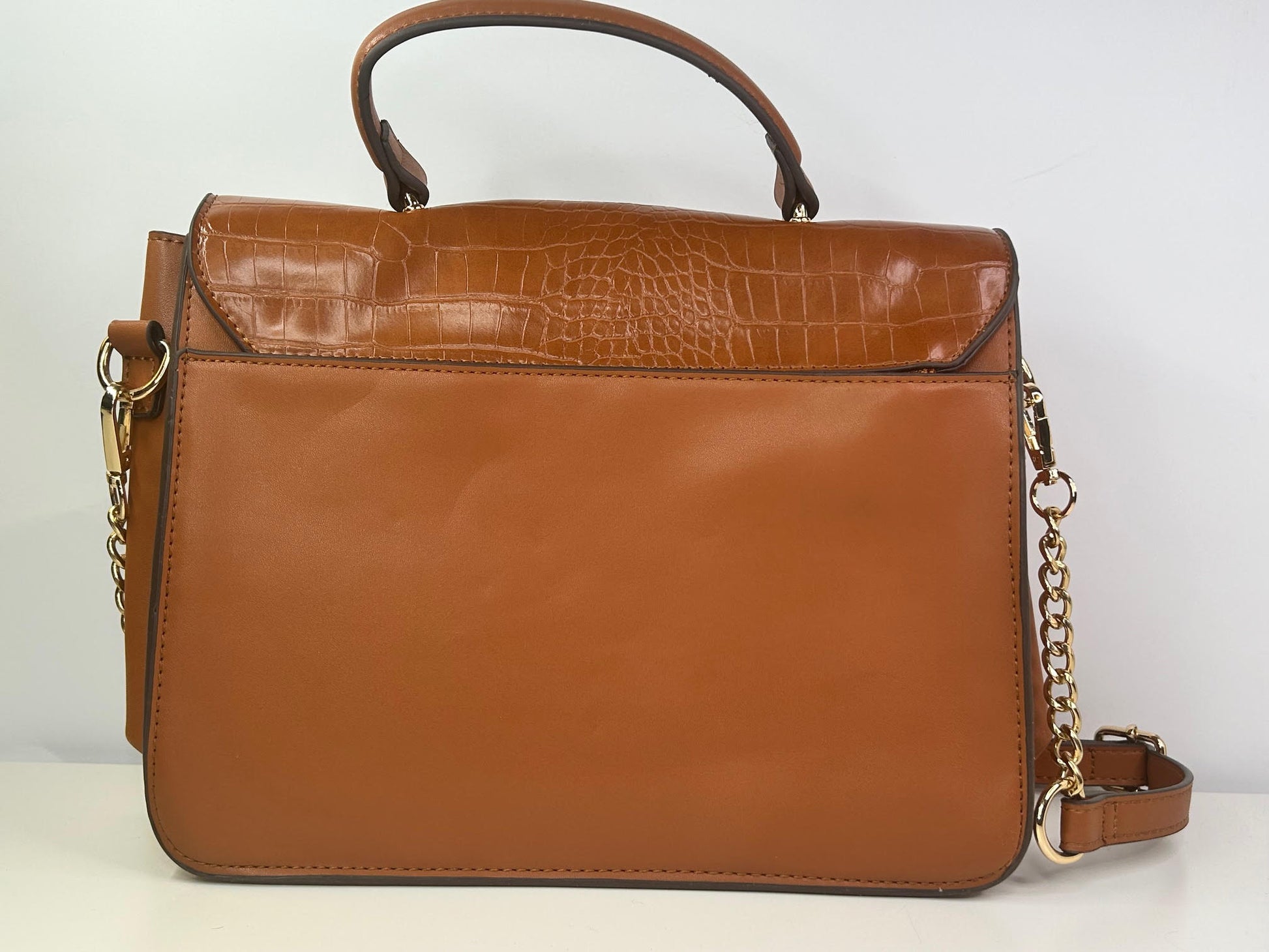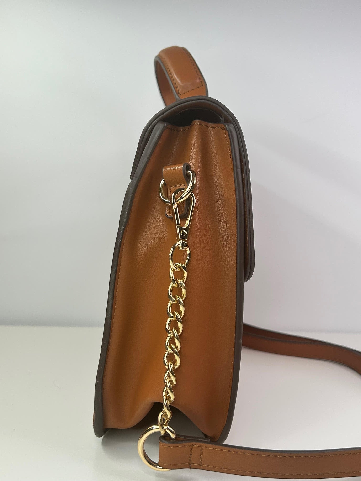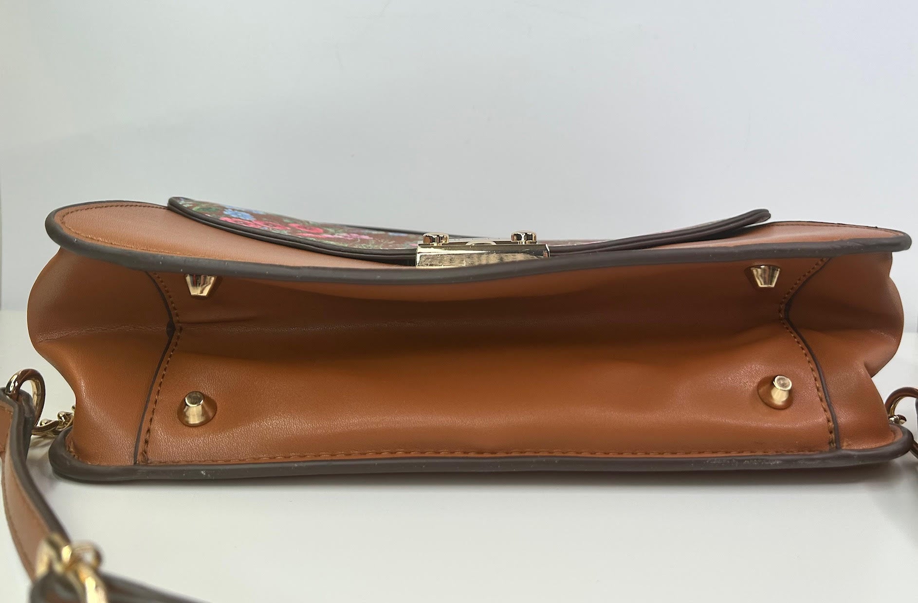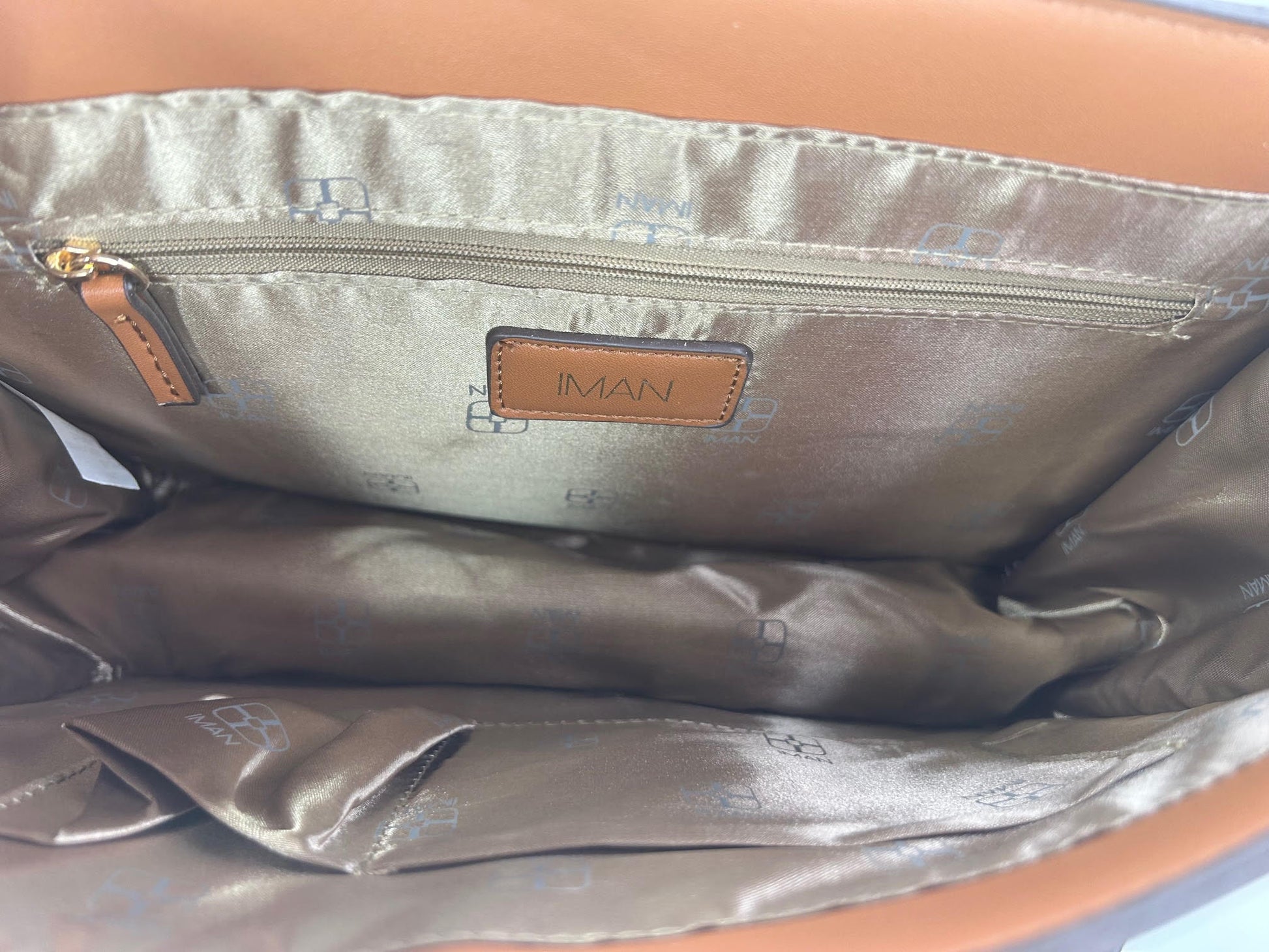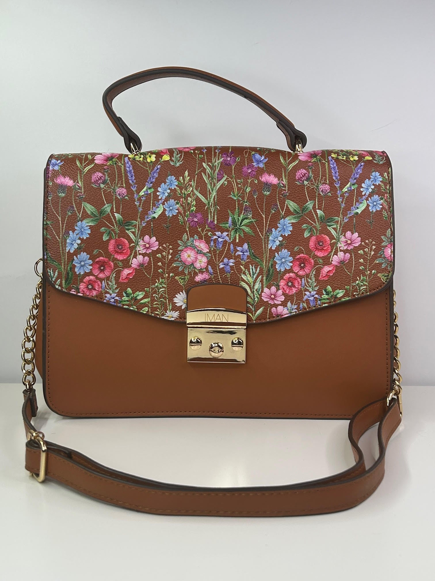 IMAN Women's Global Chic Caramel Brown and Floral Shoulder Handbag Interchangeable Top Flaps. Not in original box or package. Pre-owned. 100% of sale benefits charity.