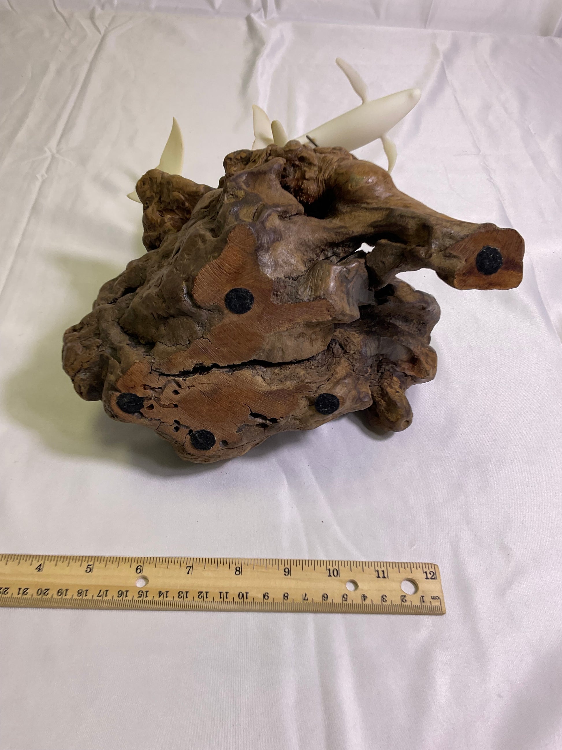 White Mother & Calf Humpback Whales Sculpture with Burlwood Base by John Perry. A decoration burlwood base of 2 white humpback whales' mother and baby. 100% of sale benefits charity.