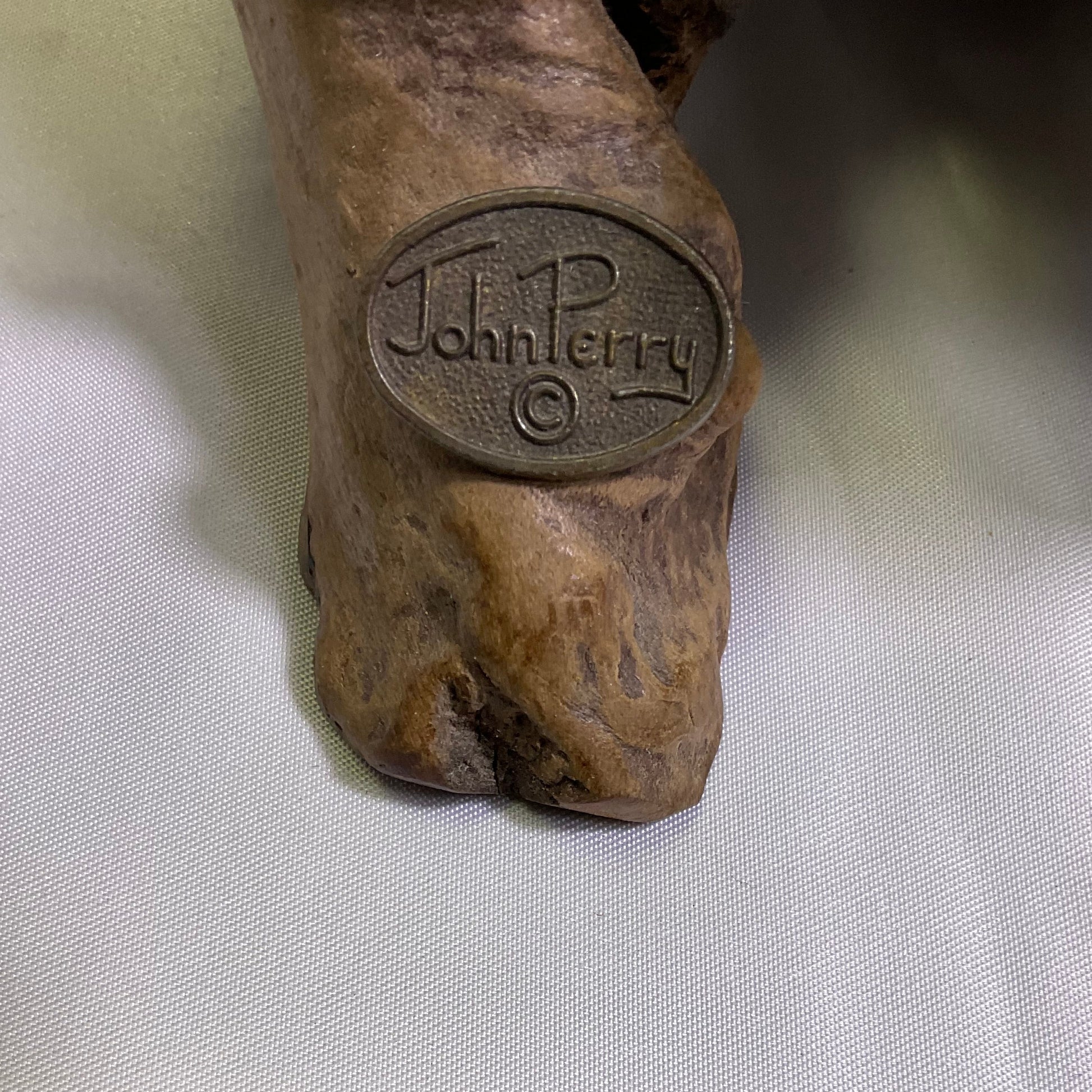 White Mother & Calf Humpback Whales Sculpture with Burlwood Base by John Perry
