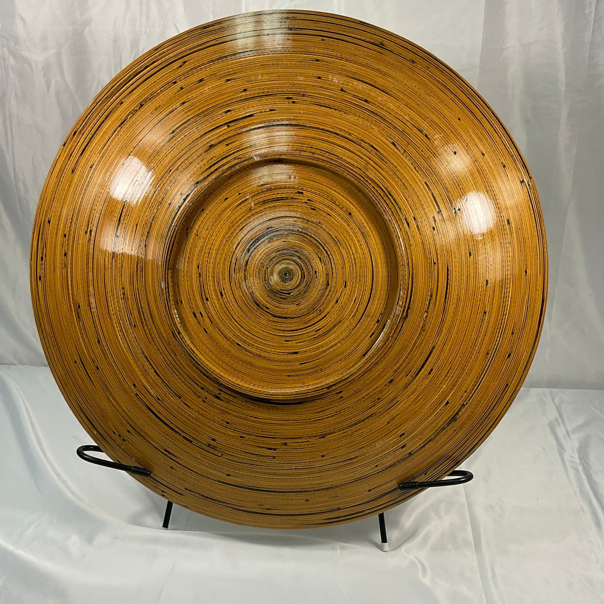Lacquered Decorative Bamboo Platter Home Decor with Display Stand 26.5 inches
