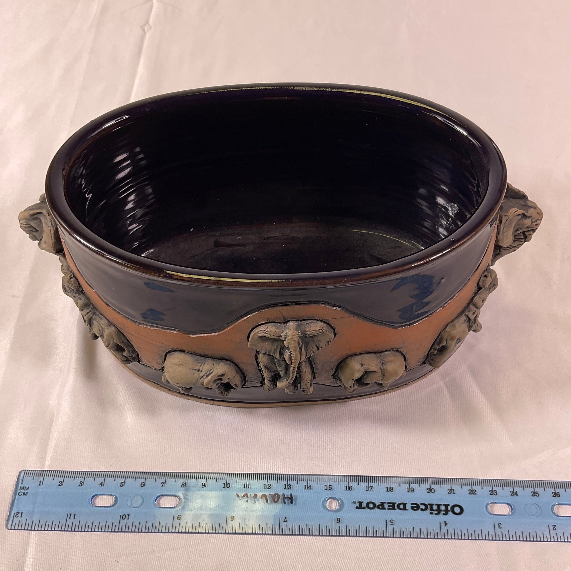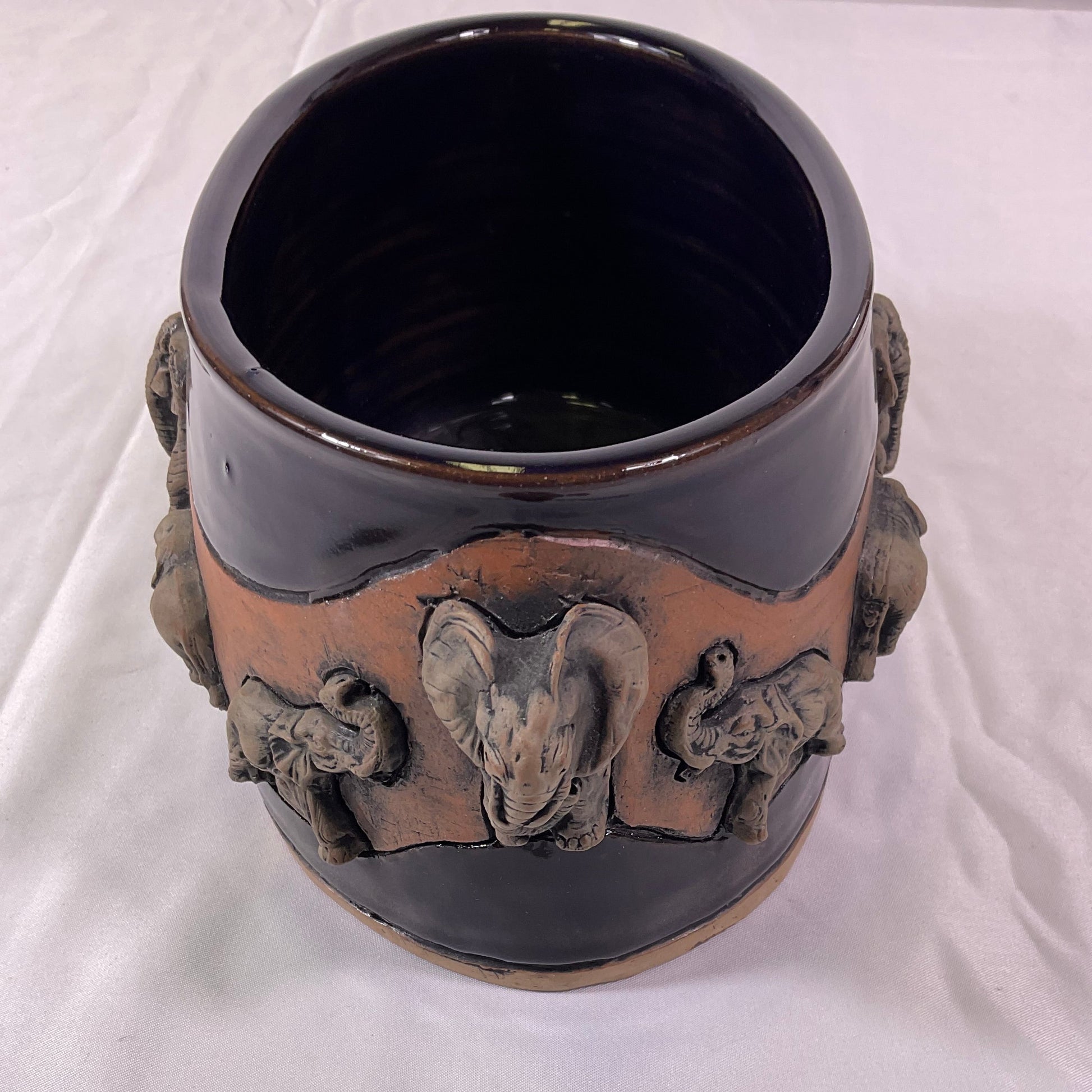 Leland G Shaw Studio Artist Signed High Relief Terra Cota Art Hand-Sculpted Elephants Warriors Planter Pot