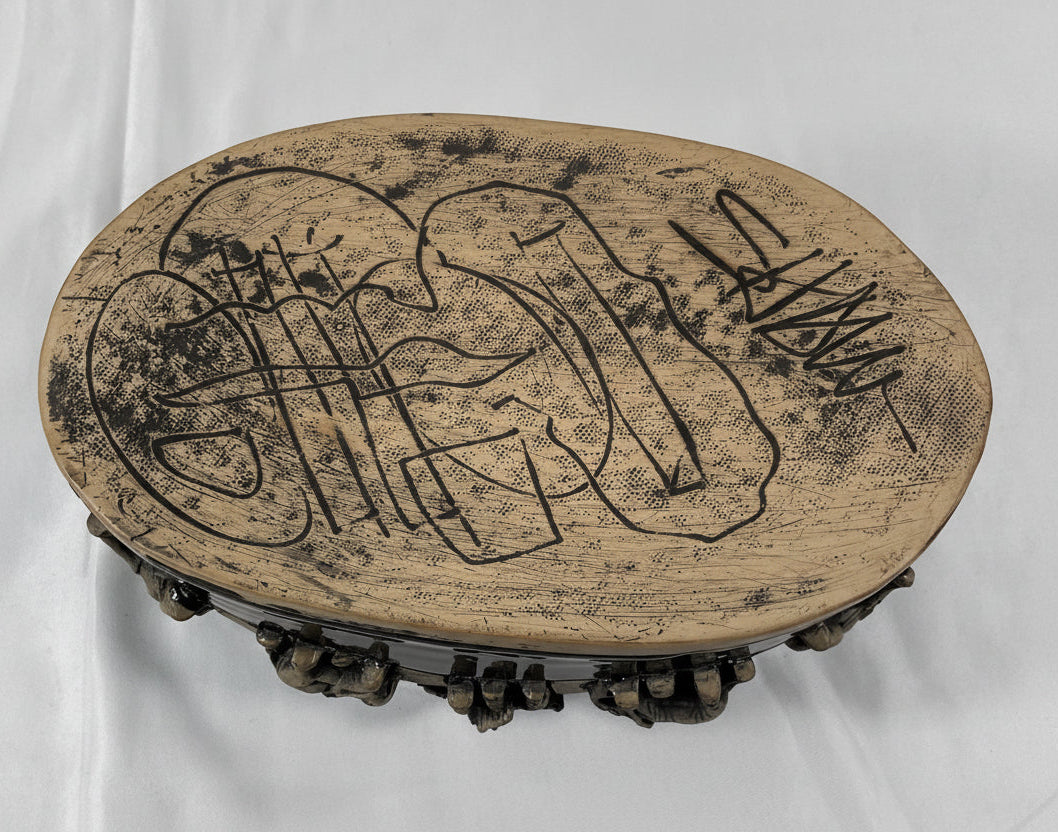 Leland G Shaw Studio Artist Signed High Relief Terra Cota Art Hand-Sculpted Elephants Warriors Planter with Artist's Statement. 100% of sale benefits charity. See photos for condition details.