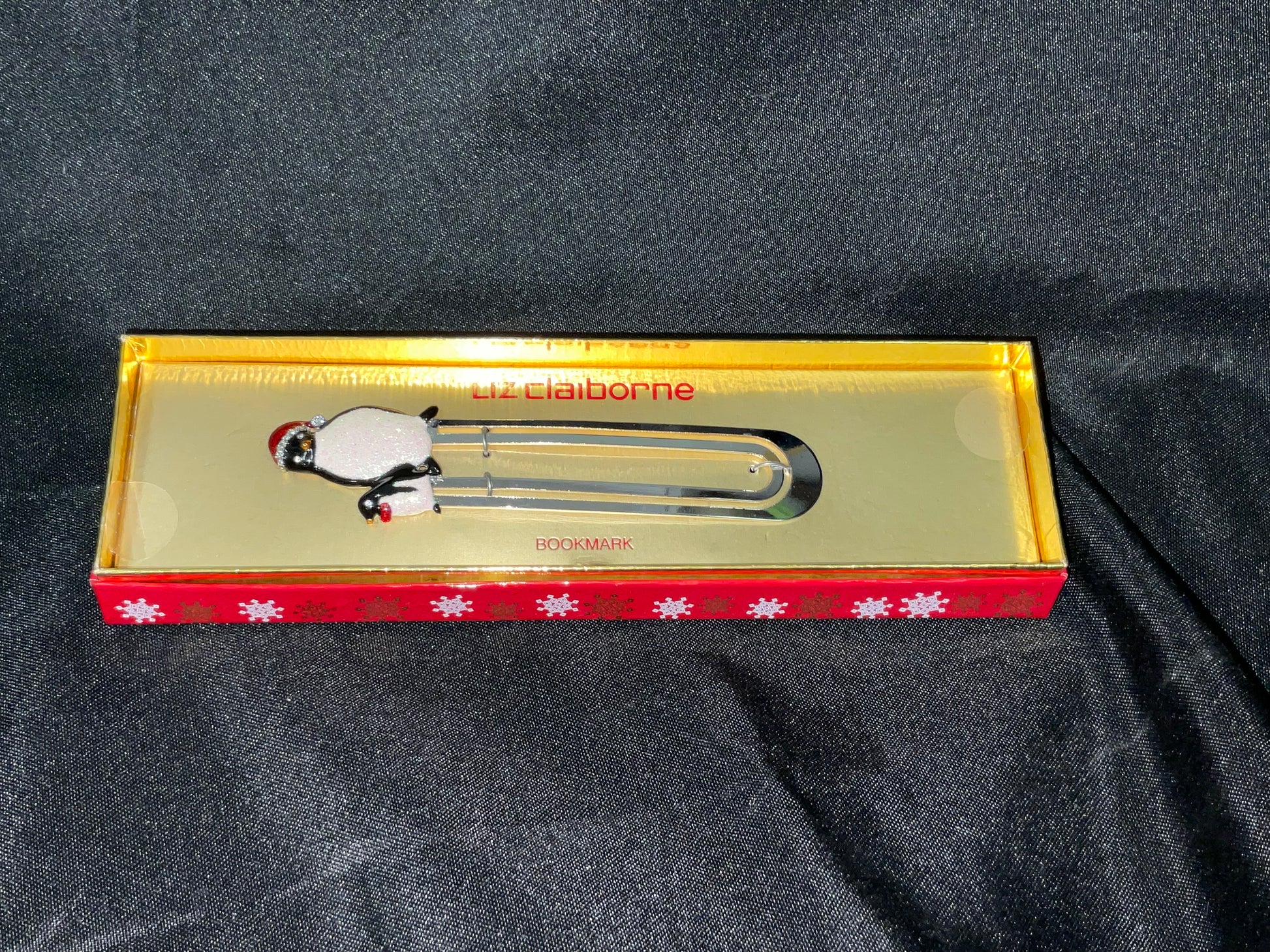 Liz Claiborne Christmas Holiday Season Jeweled Sparkle Penguin Bookmark New in Box. 100% of sale benefits charity.