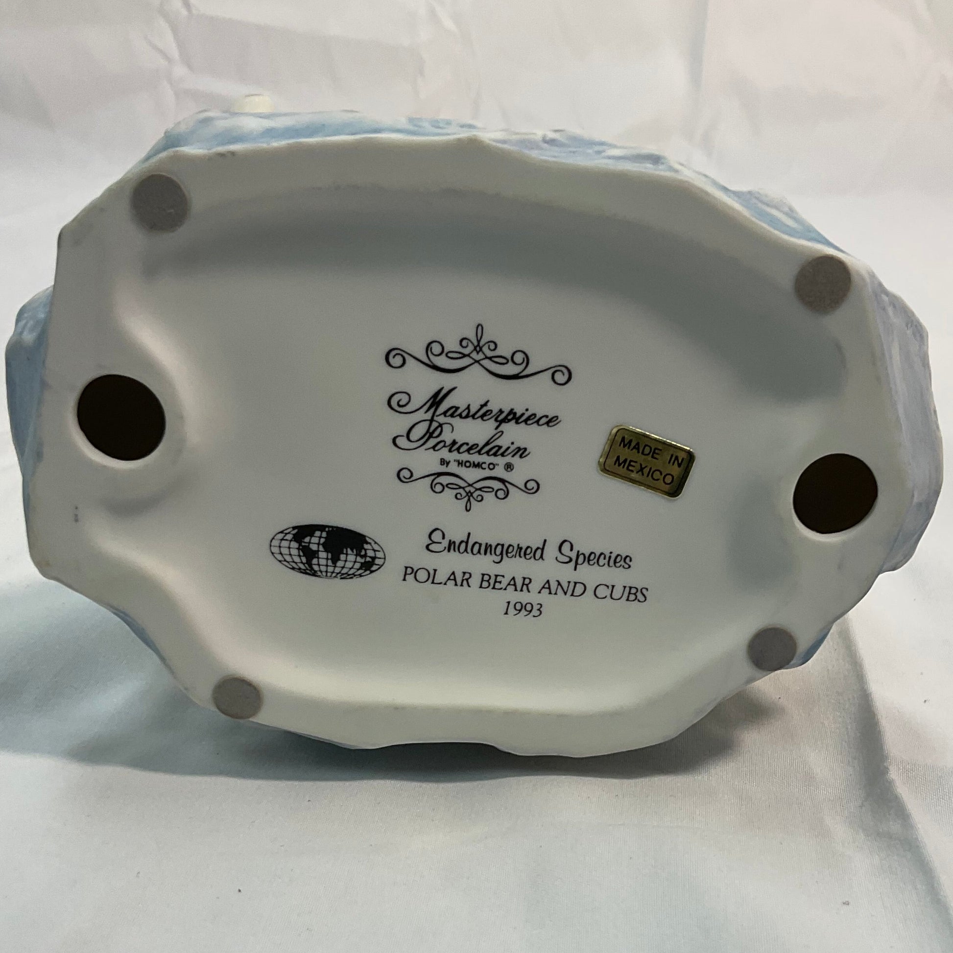 Polar Bear and Cubs Vintage 1993 Masterpiece Porcelain Homco Endangered Species Series. 100% of sale benefits charity. Excellent condition. Includes separate wooden display base. 7.5 in. wide x 6.5 in deep x 5.5 in tall (on base). Not in original box.