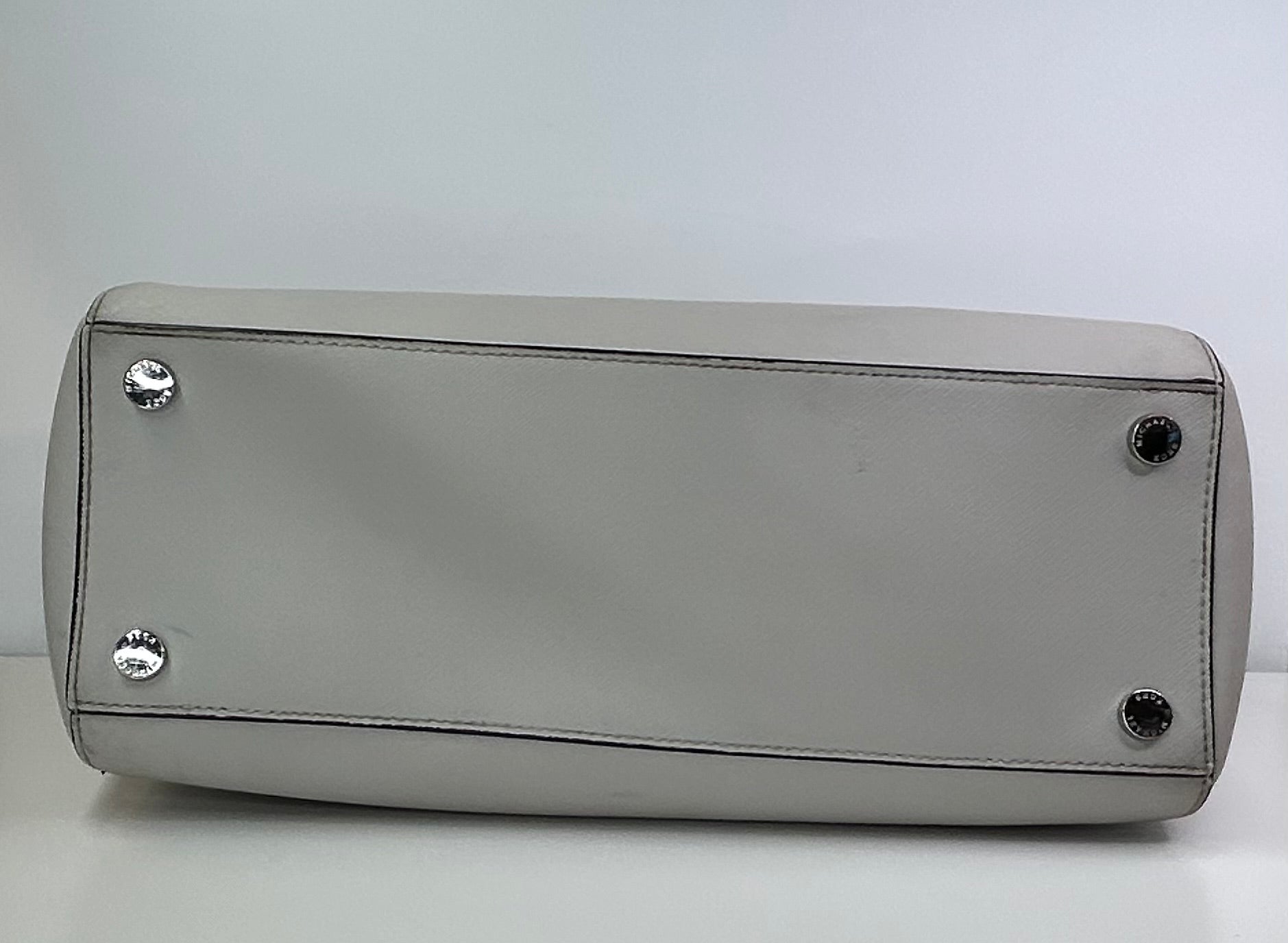 Michael Kors Ciara Large Light Stone Leather Top Zip Satchel Crossbody Purse Bag