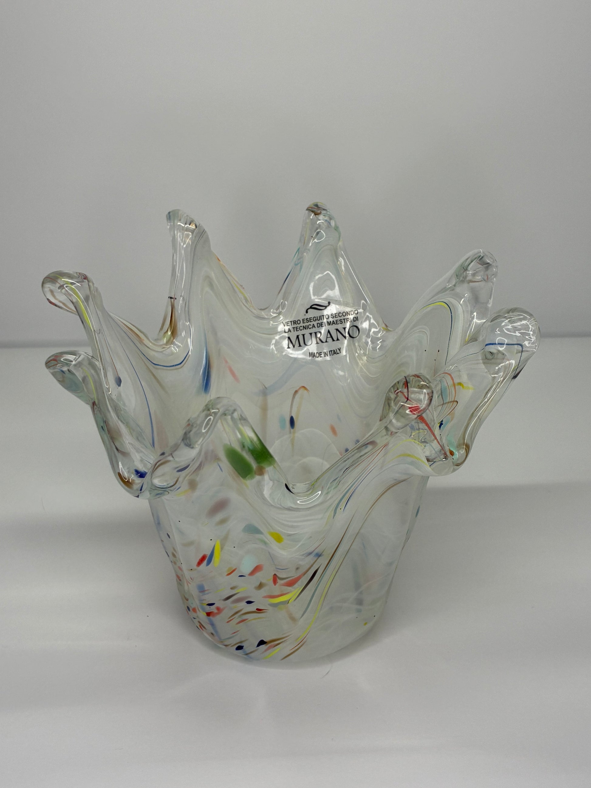 Murano Glass Authentic Italian Handmade Rainbow Speckled Crown Shaped Vase. Not in original box. 100% of sale benefits charity.