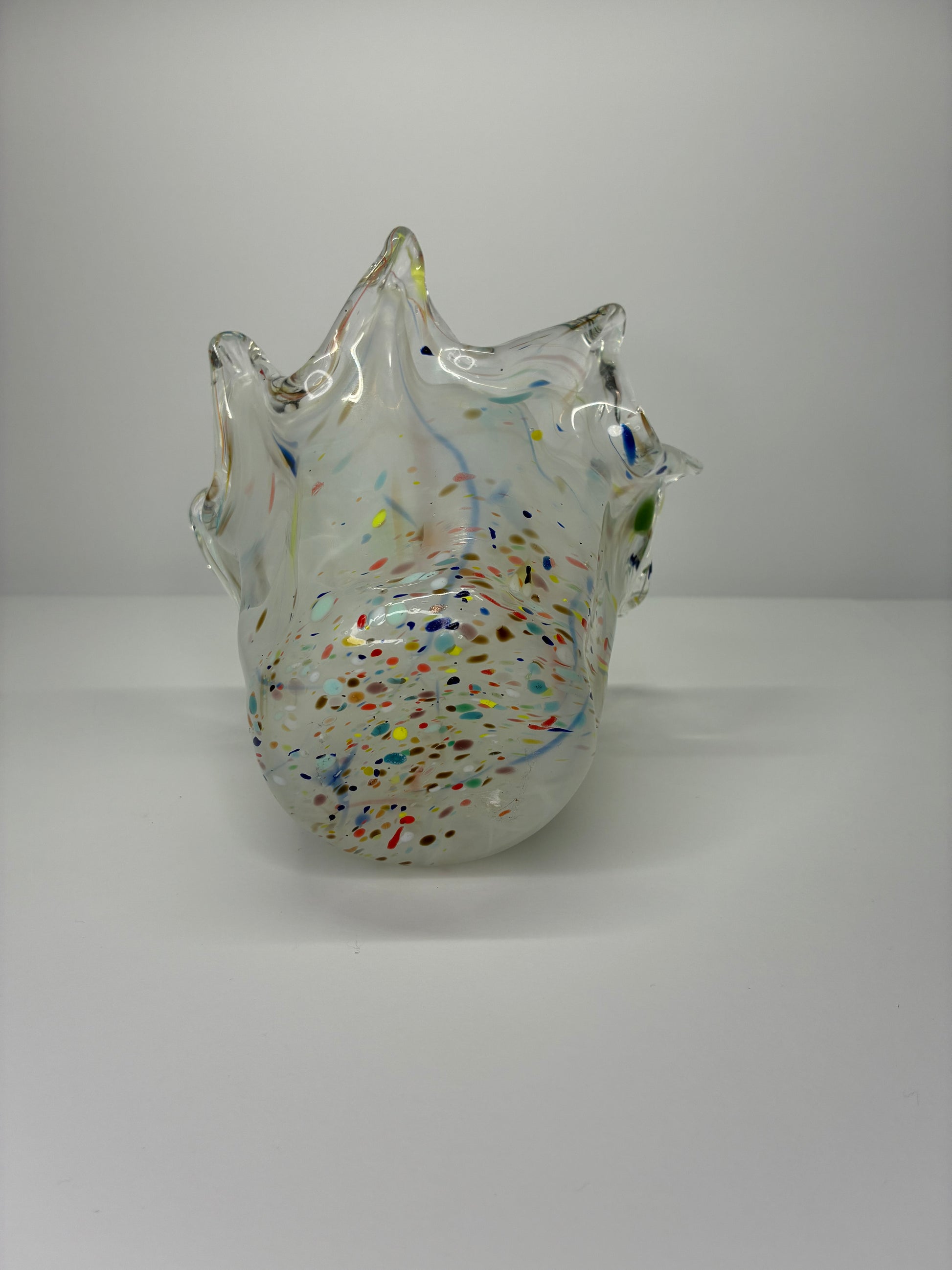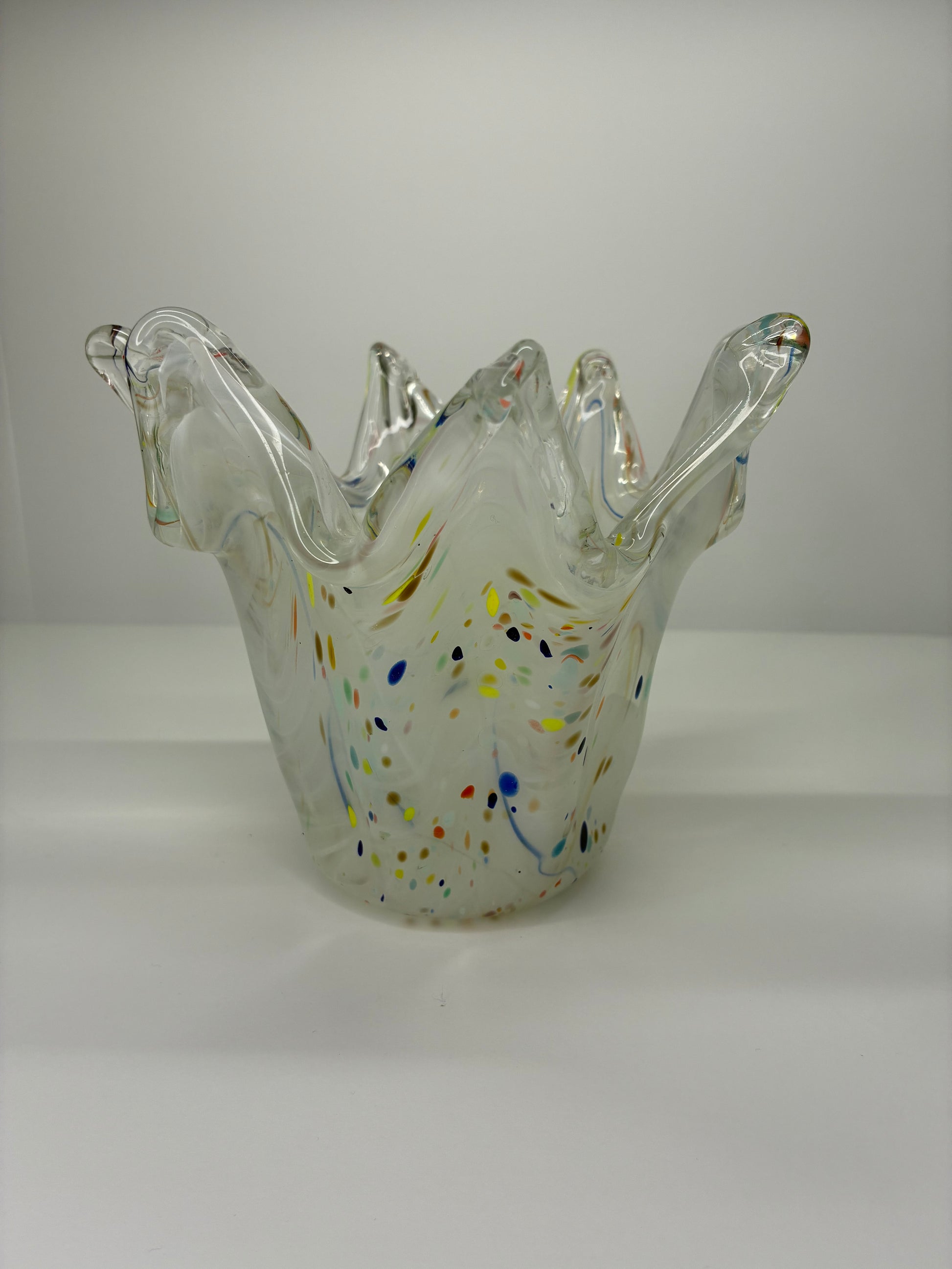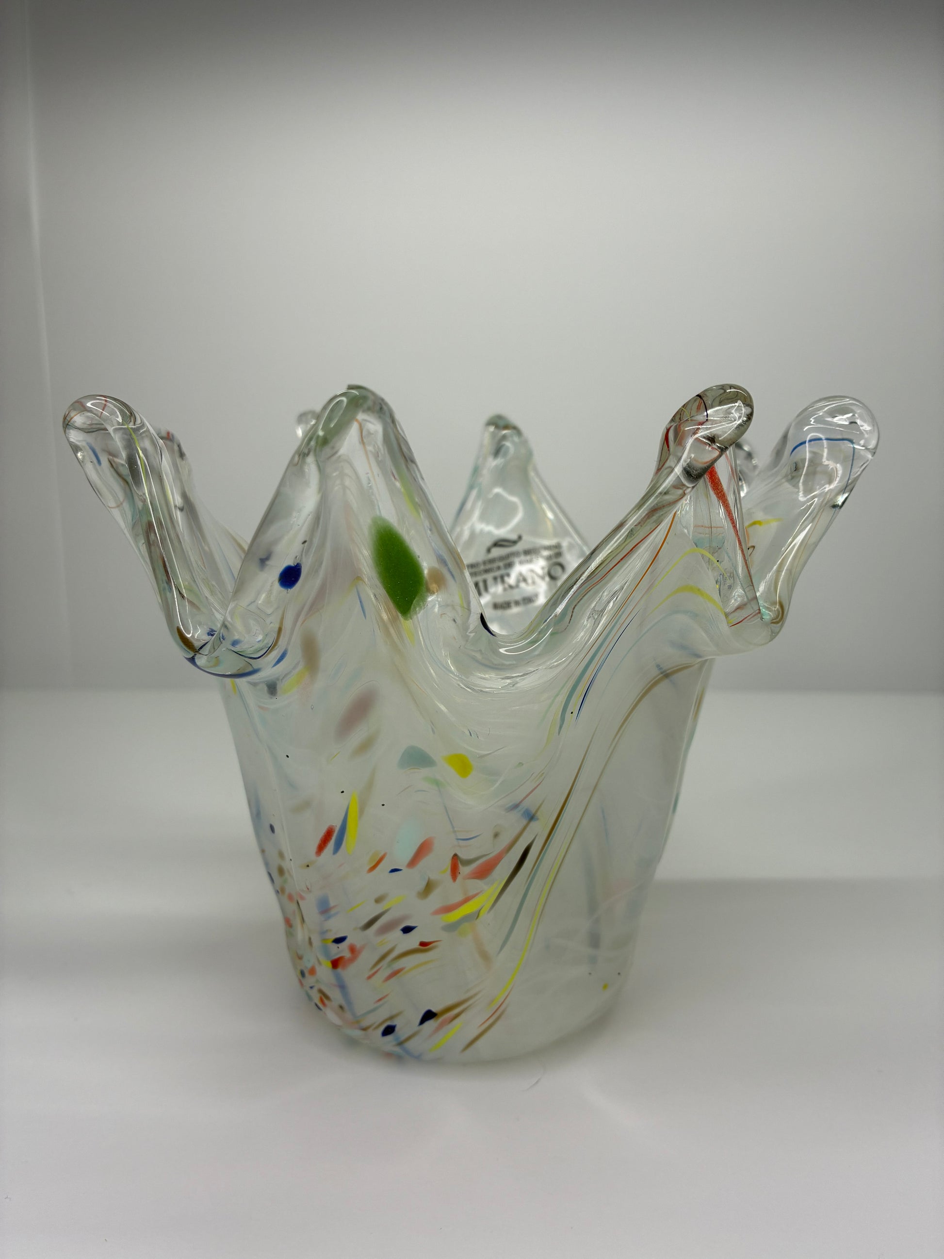 Murano Glass Authentic Italian Handmade Rainbow Speckled Crown Shaped Vase