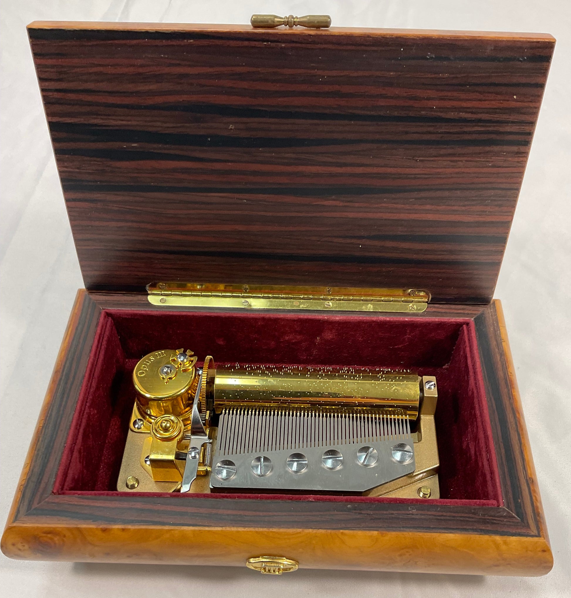 Opus III 3 50 Note Music Box Sorrento Style Wood with Inlay Instrument Made in Italy Working in Excellent Condition. Plays "When You Wish Upon a Star" and "Over The Rainbow". 100% of sale benefits charity.
