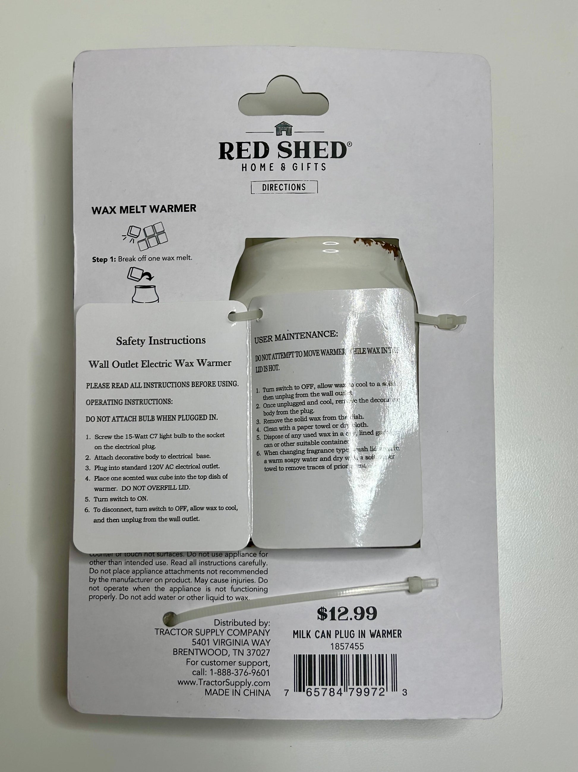 Red Shed Home & Gifts "Milk Can Plug In Warmer" Brand New Never Used.