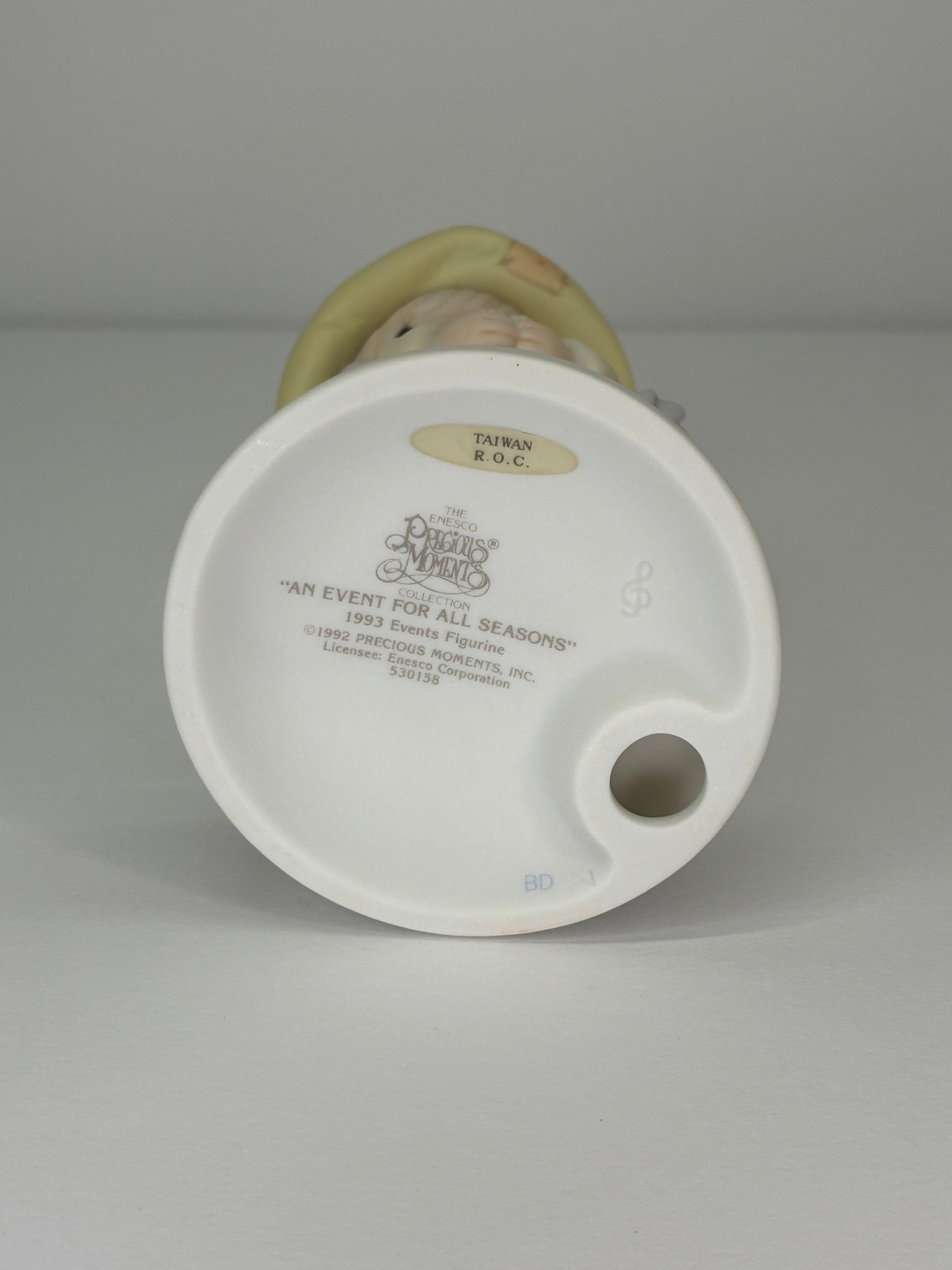Precious Moments Vintage 1993 Event Figurine An Event for All Seasons Hand Painted Porcelain Collectible Figurine Original Box Mint Condition by Enesco #530158. 100% of sale benefits charity.