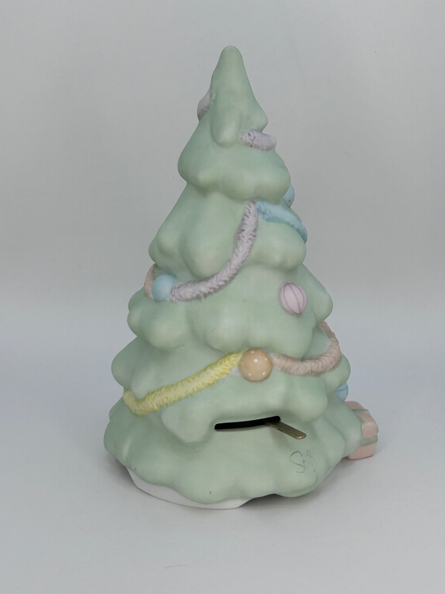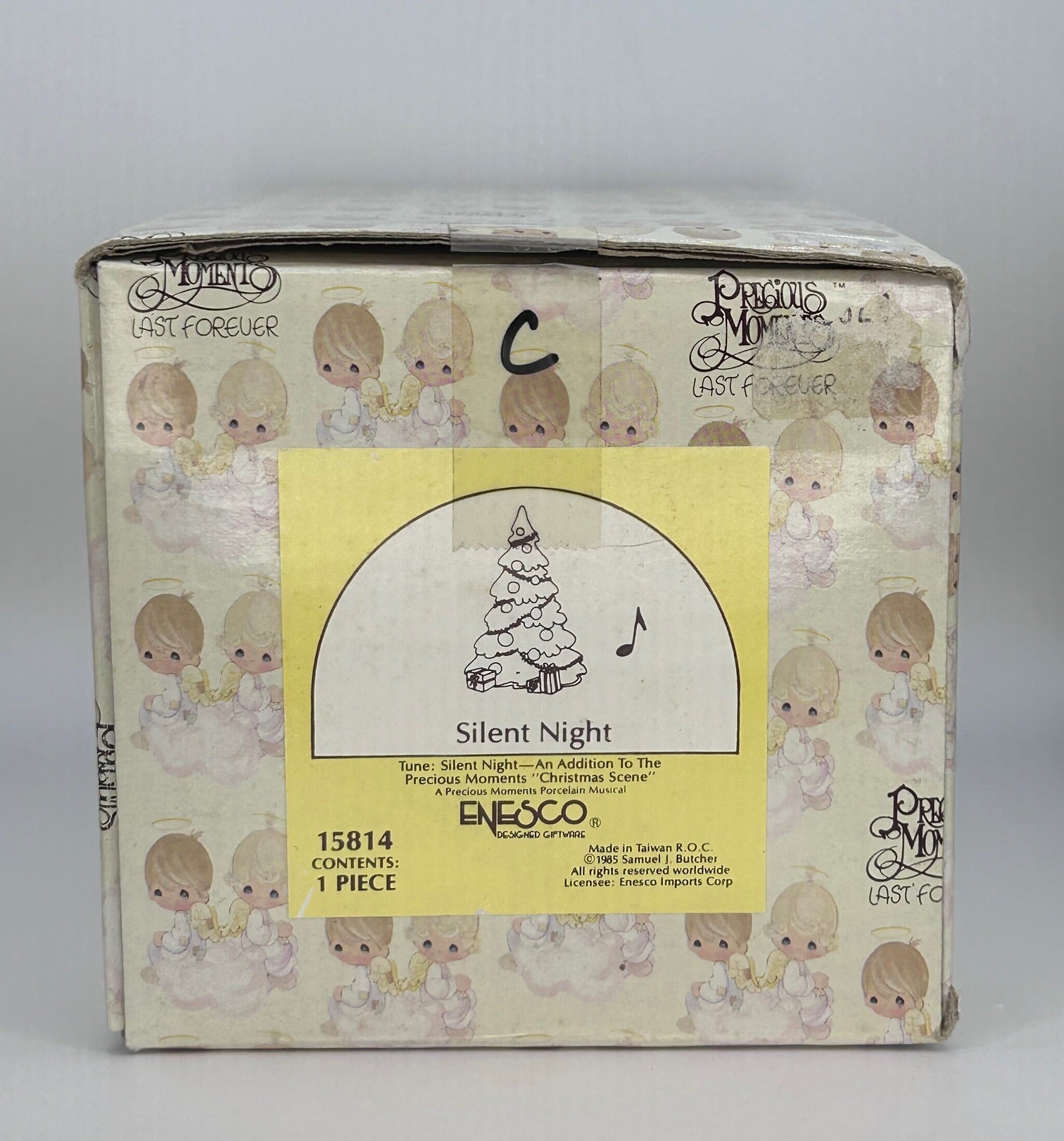 Precious Moments Porcelain Music Box Vintage 1985 Silent Night Hand Painted Collectible Figurine Original Box Mint Condition by Enesco 15814. 100% of sale benefits charity.