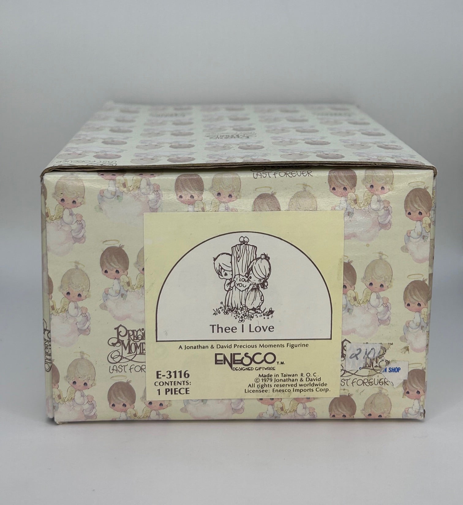Precious Moments Vintage 1979 Thee I Love Hand Painted Porcelain Collectible Figurine Original Box Mint Condition by Enesco E-3116. 100% of sale benefits charity.