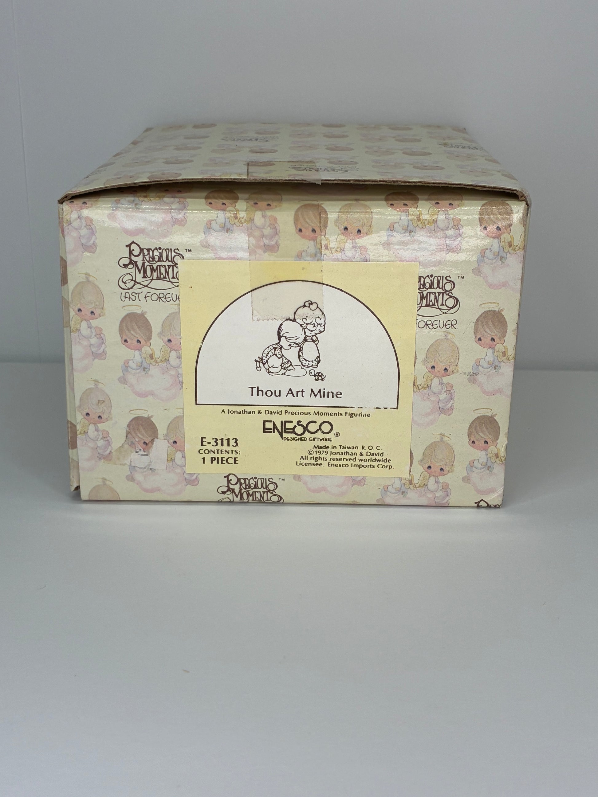 Precious Moments Vintage 1979 Thou Art Mine Hand Painted Porcelain Collectible Figurine Original Box Mint Condition by Enesco Jonathan & David #E-3113. 100% of sale benefits charity.