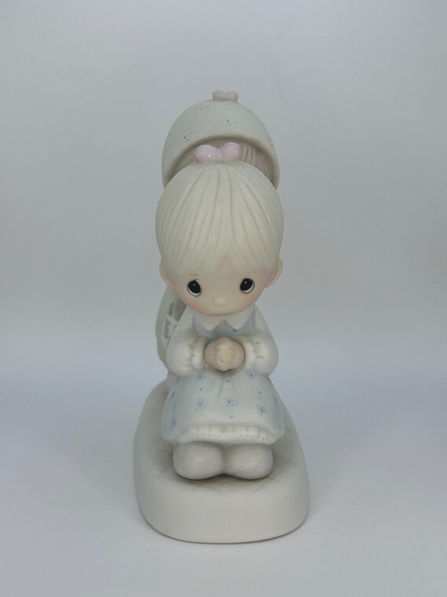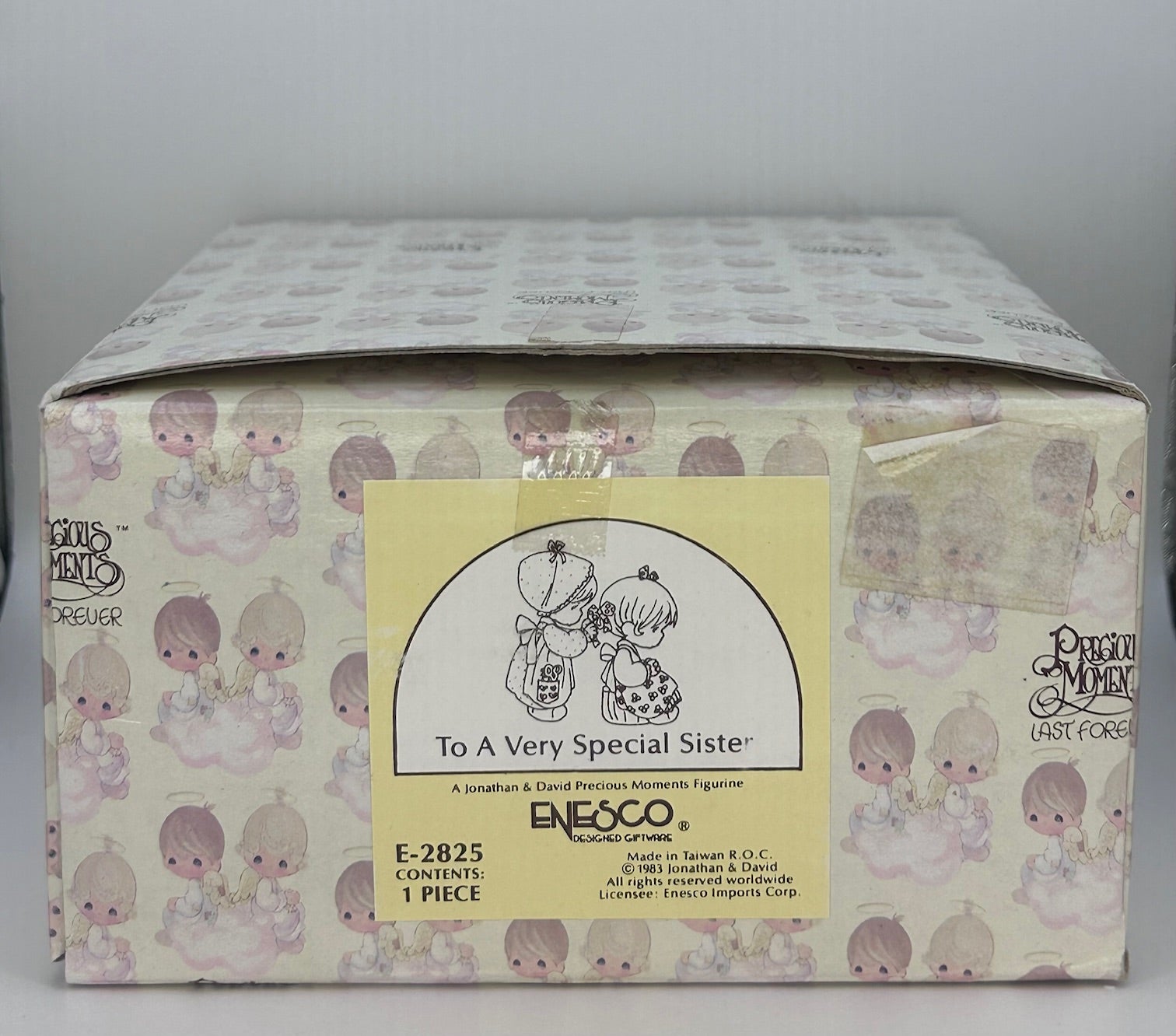 Precious Moments Vintage 1983 To A Very Special Sister Hand Painted Porcelain Collectible Figurine Original Box Mint Condition by Enesco E-2825. 100% of sale benefits charity.