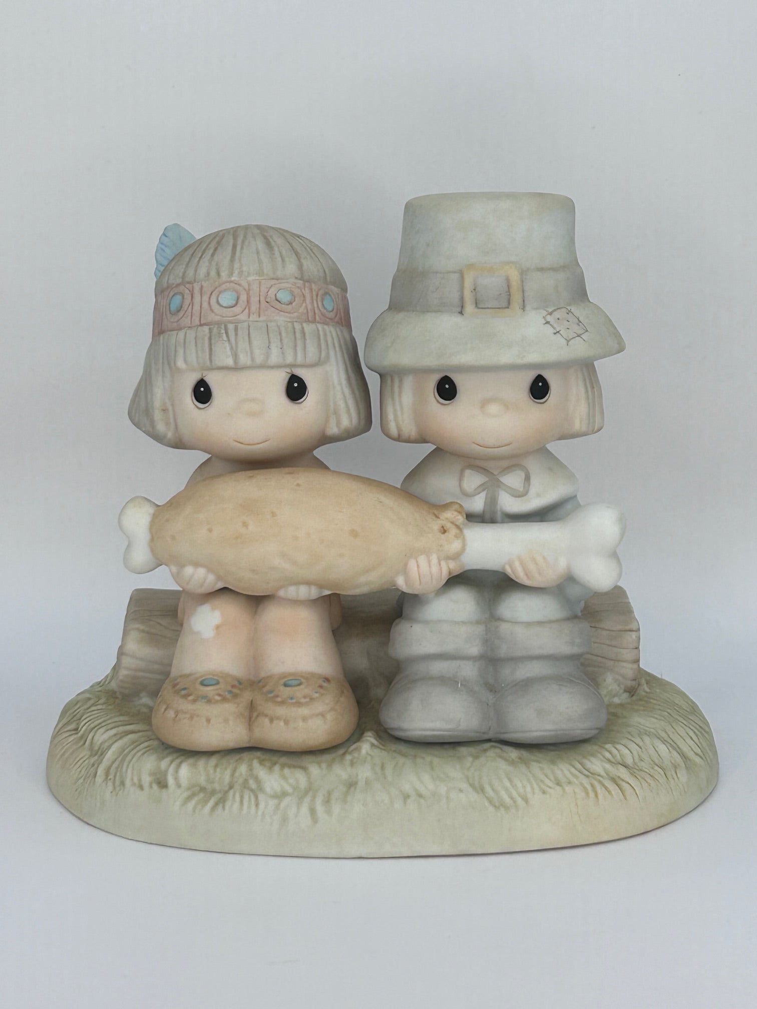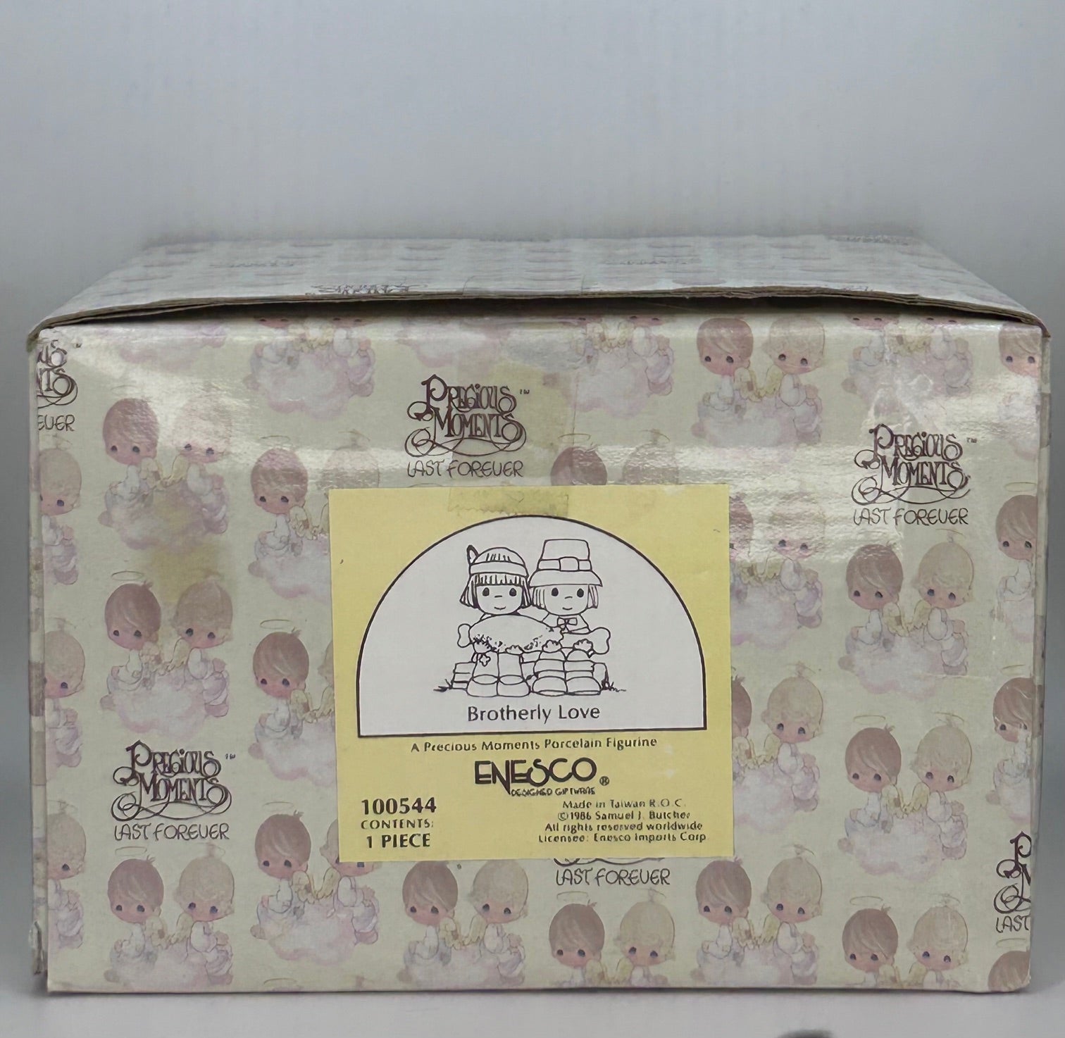 Precious Moments Vintage 1986 Brotherly Love Painted Porcelain Collectible Figurine Original Box Mint Condition by Enesco 100544. 100% of sale benefits charity.