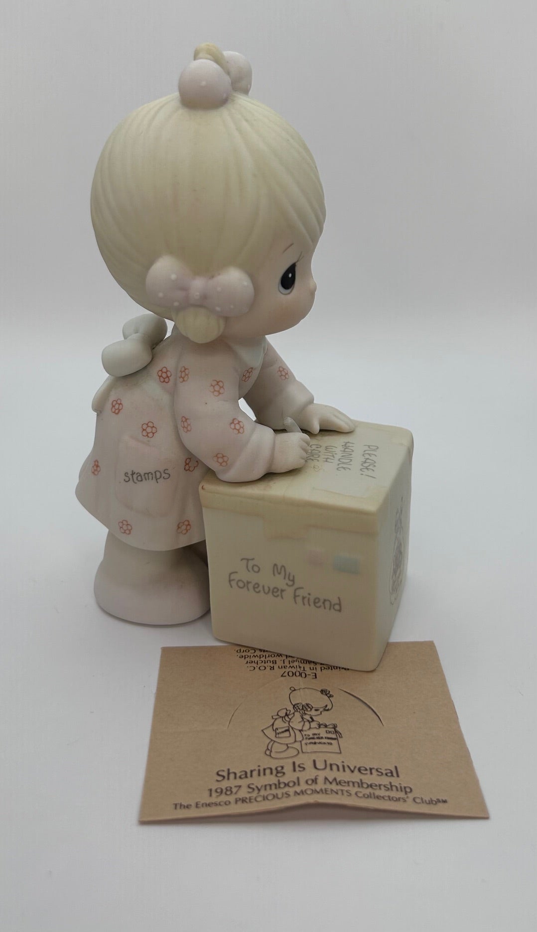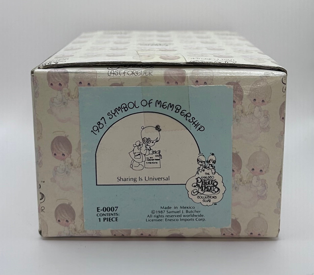 Precious Moments Vintage 1987 Sharing is Universal Porcelain Figurine Original Box