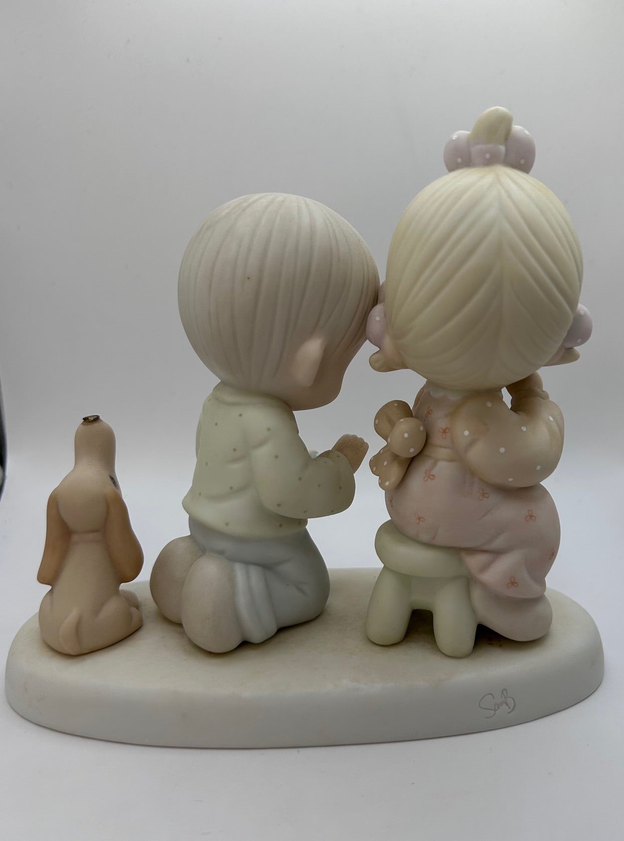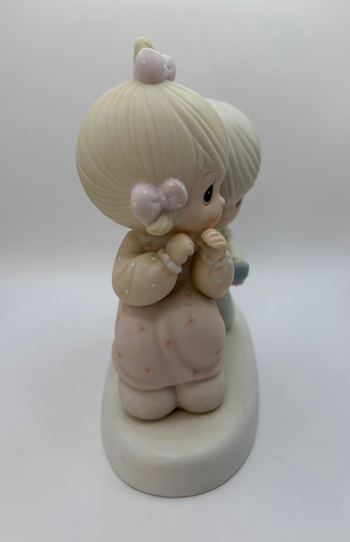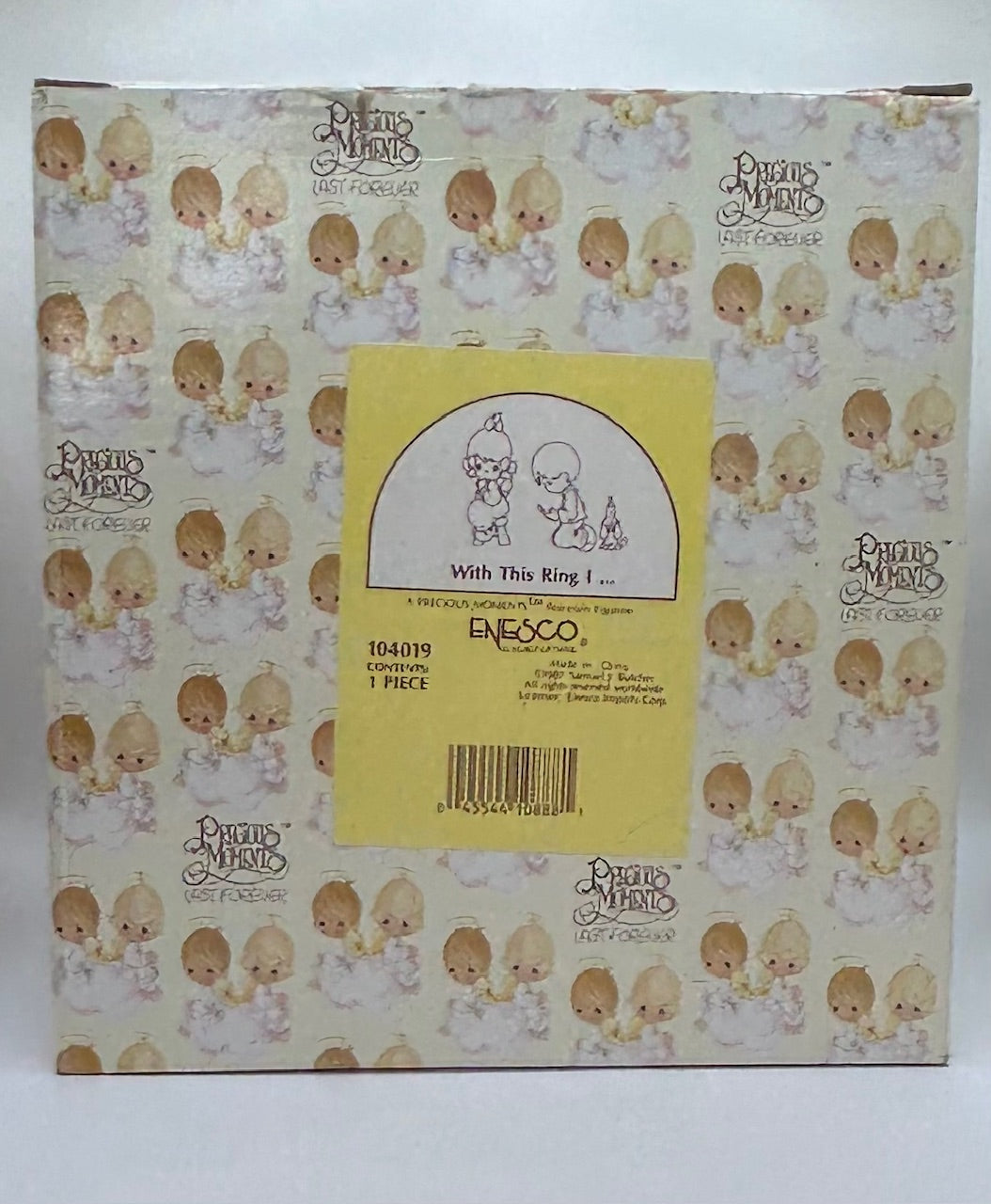 Precious Moments Vintage 1987 With This Ring, I... Hand-Painted Porcelain Figurine Collectible Original Box Mint Condition by Enesco 104019. 100% of sale benefits charity.