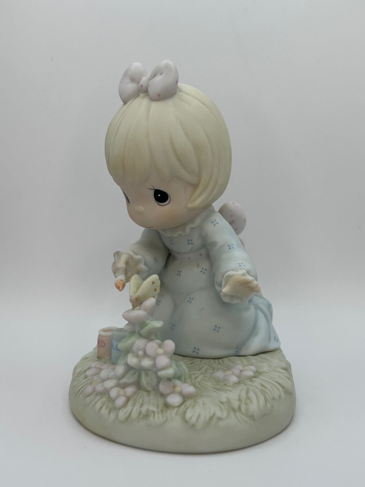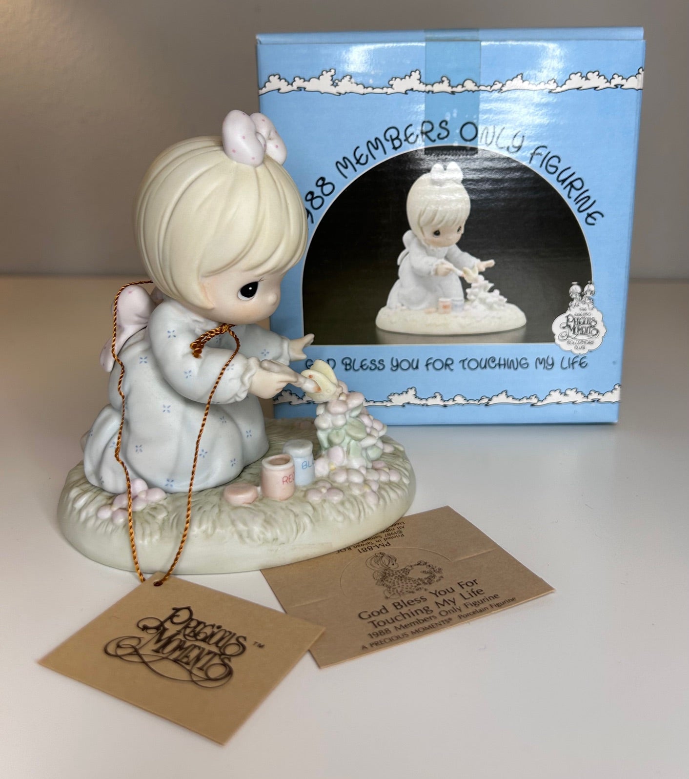 Precious Moments Vintage 1988 Members Only Figurine God Bless You For Touching My Life Hand Painted Porcelain Collectible Figurine New in Original Box with Tags Mint Condition by Enesco.100% of sale benefits charity.