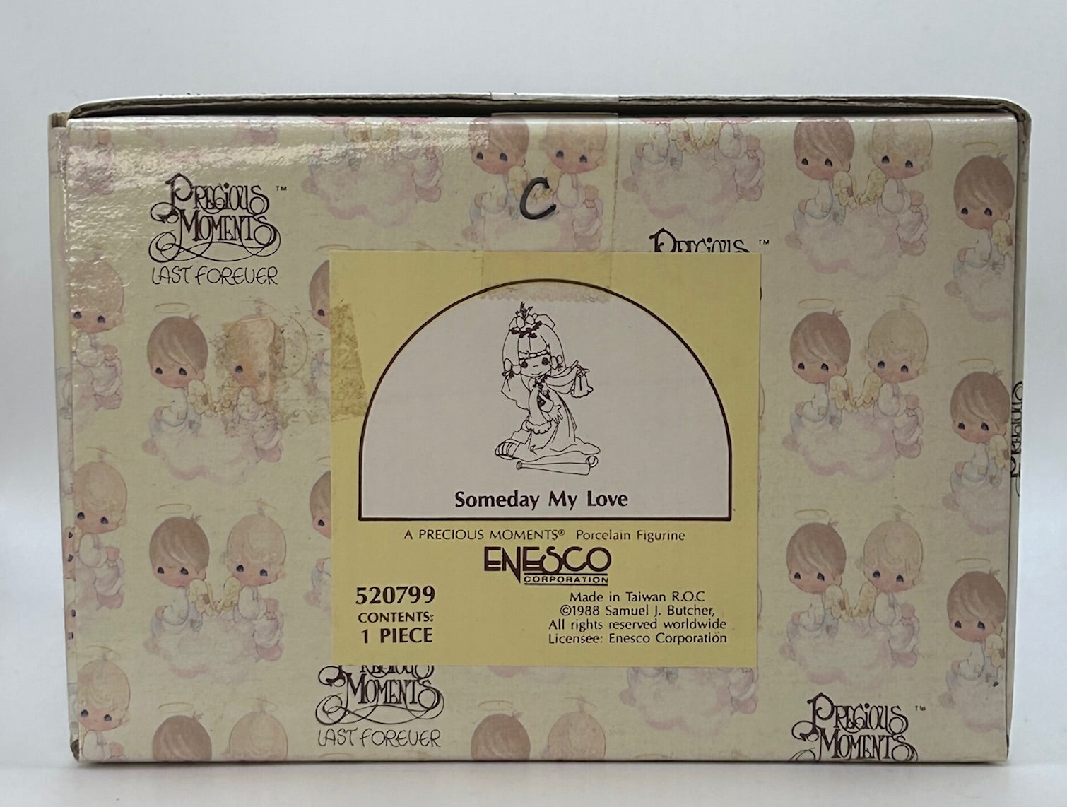 Precious Moments Vintage 1988 Someday My Love Porcelain Figurine Collectible Original Box Mint Condition by Enesco 520799. 100% of sale benefits charity.