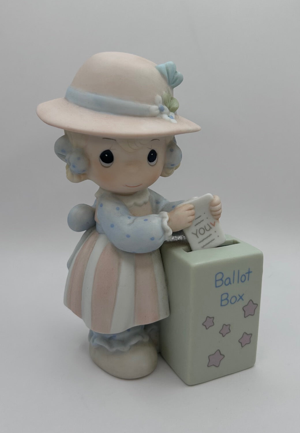 Precious Moments Vintage 1989 Members Only Figurine Your Will Always Be My Choice Hand Painted Porcelain Collectible Figurine New in Original Box Mint Condition by Enesco PM-891. 100% of sale benefits charity.
