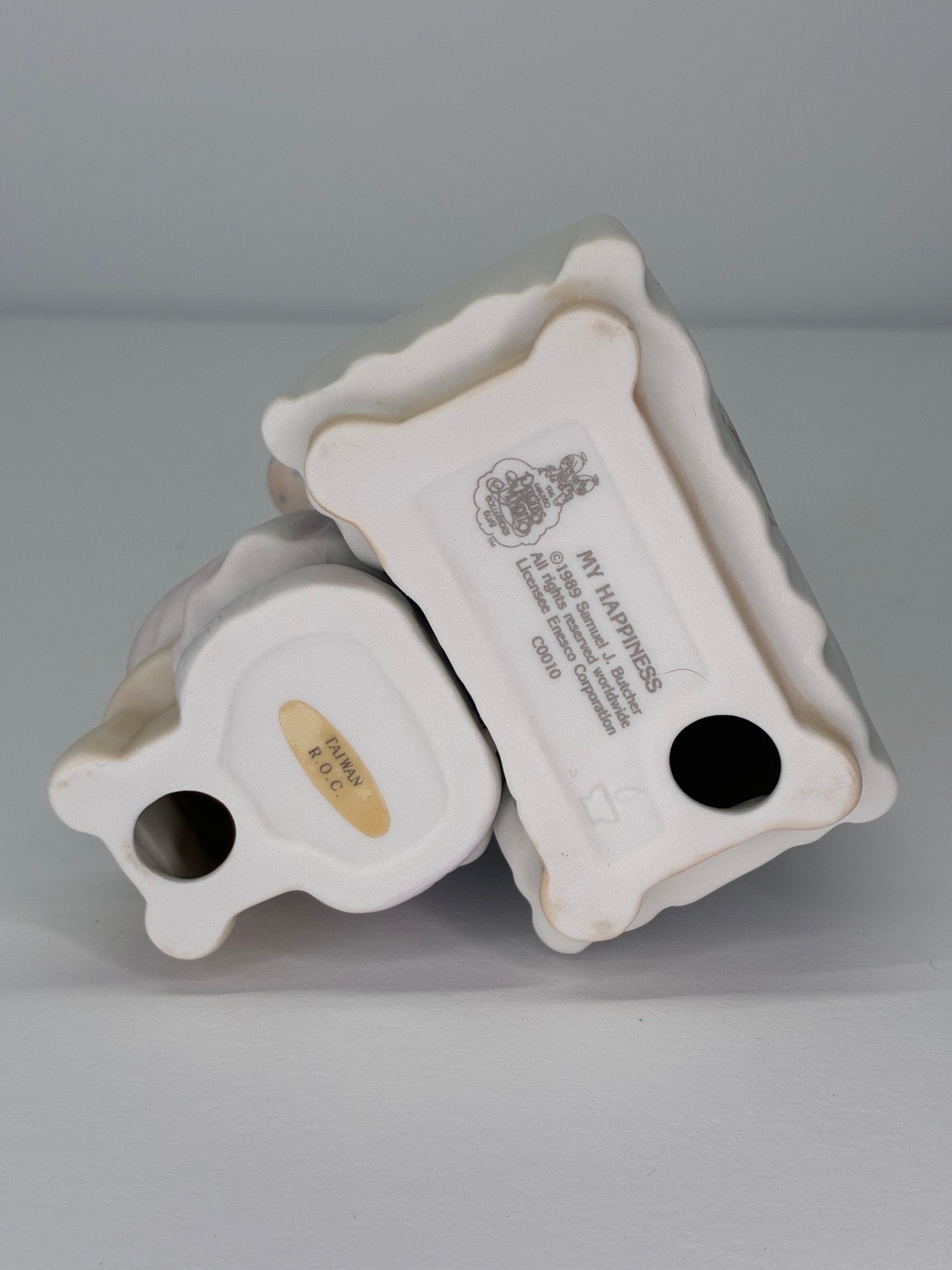 Precious Moments Vintage 1989 Symbol of Membership My Happiness Hand Painted Porcelain Collectible Figurine Original Box Mint Condition by Enesco Samual J. Butcher #C0010. 100% of sale benefits charity.