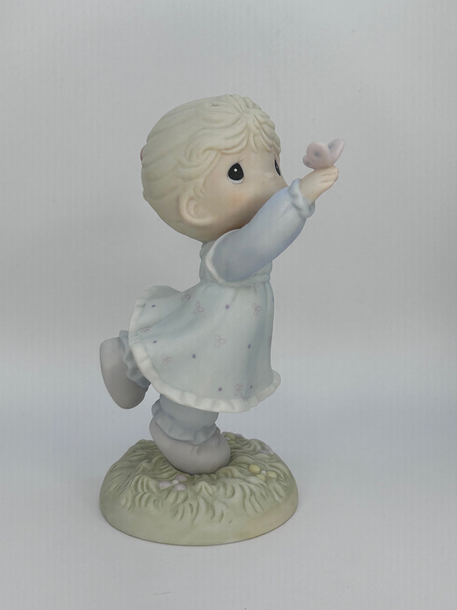 Precious Moments Vintage 1992 Happiness Is At Our Fingertips Hand Painted Porcelain Collectible Figurine Original Box Mint Condition by Enesco 529931. 100% of sale benefits charity.