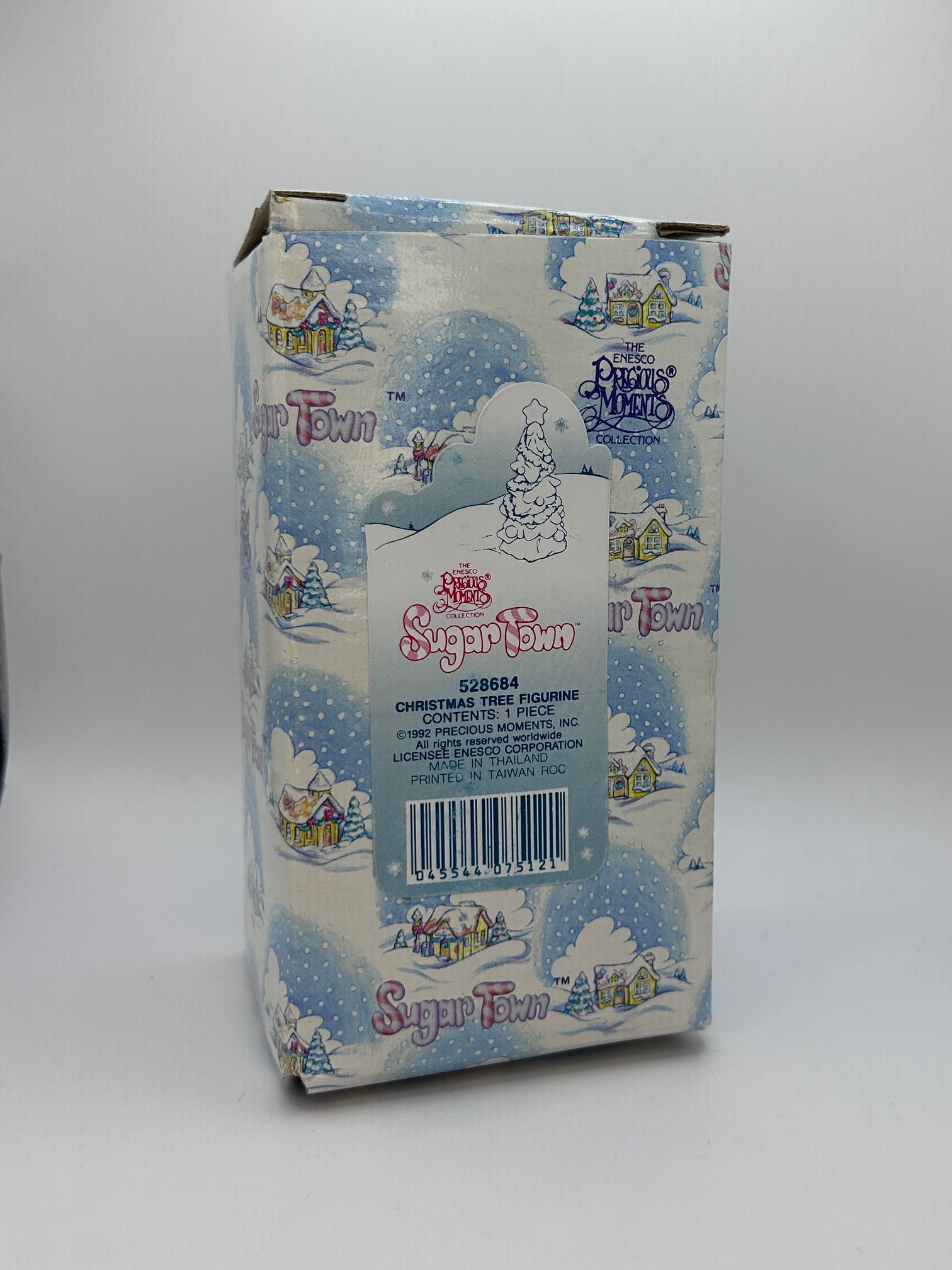 Precious Moments Vintage 1992 Sugar Town Christmas Tree Porcelain Figurine Collectible Original Box Mint Condition by Enesco 528684. 100% of sale benefits charity.